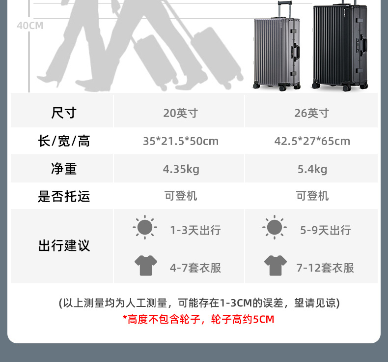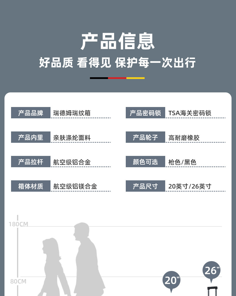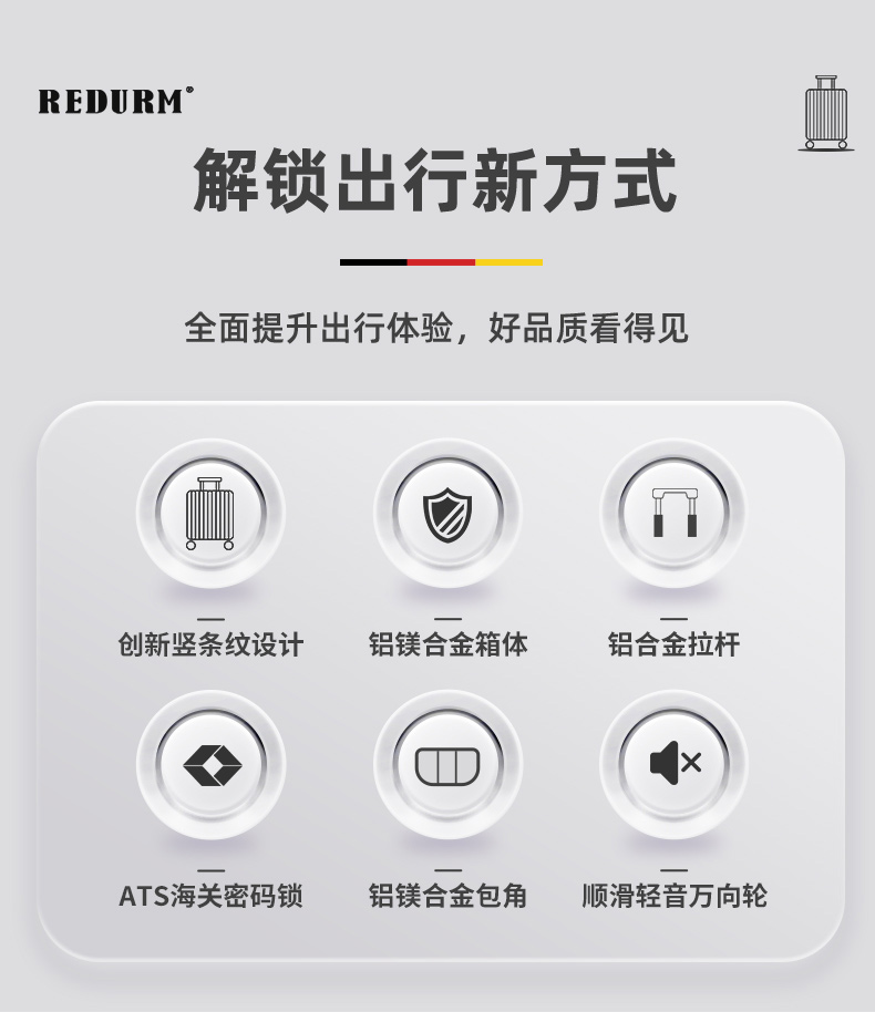 瑞德姆全铝镁合金拉杆箱瑞纹款(单位:个) 黑色 26寸