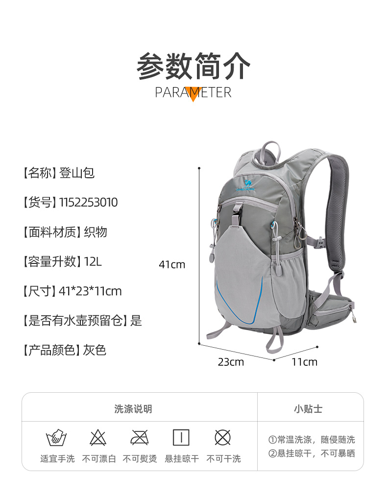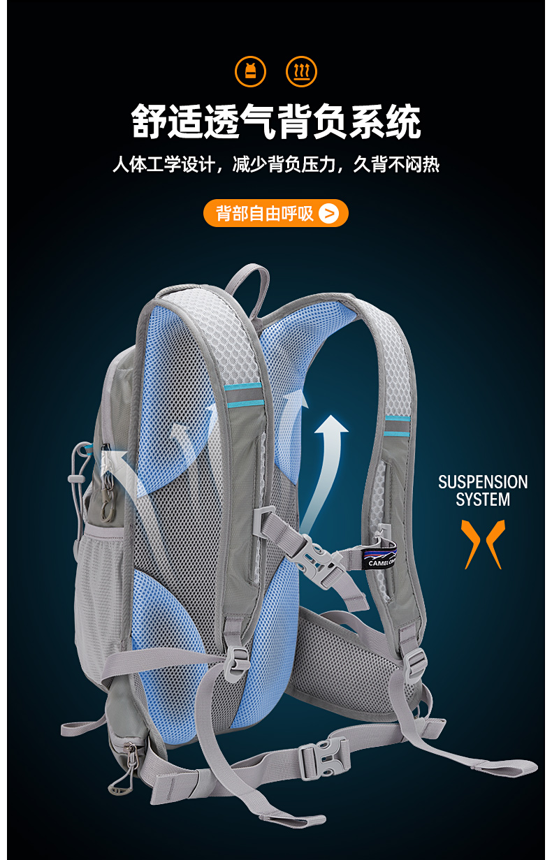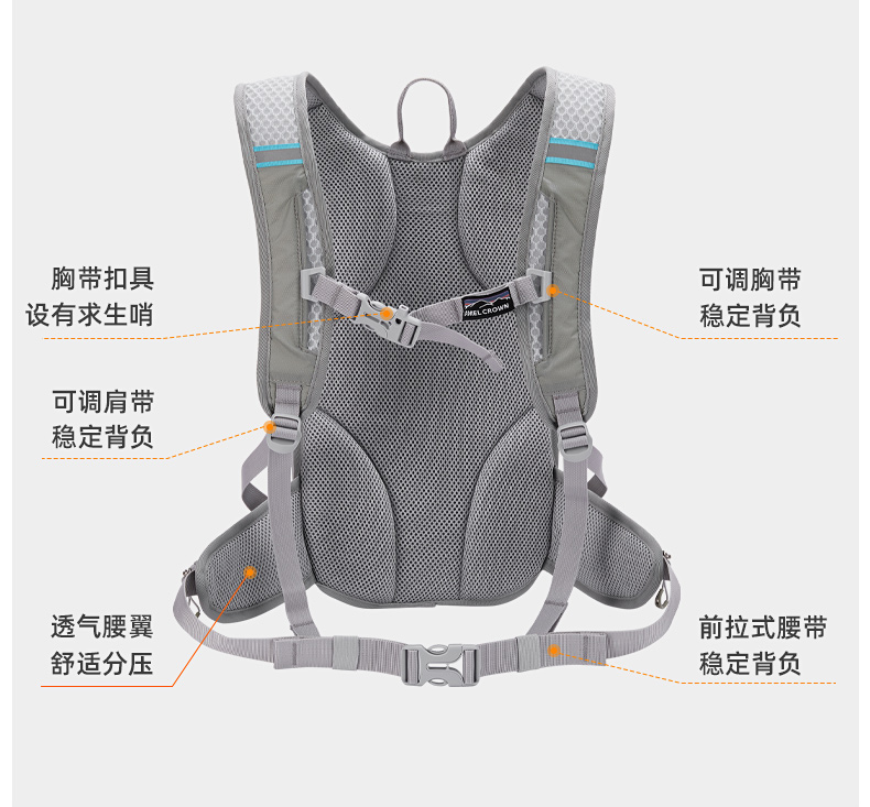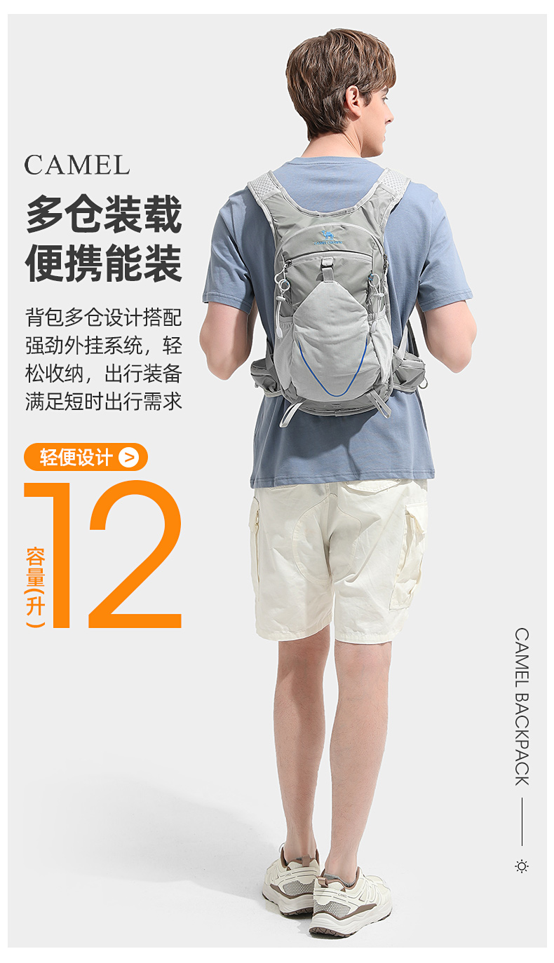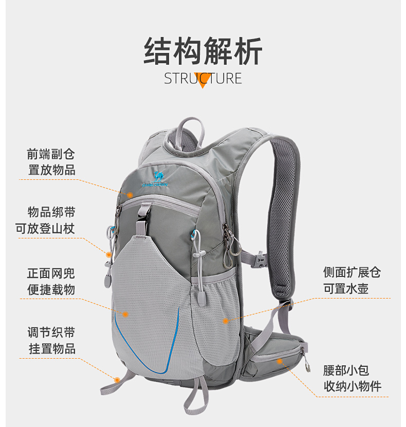 骆驼CAMEL轻便跑步运动书包男女大学生超轻越野跑骑行户外登山 双肩背包1152253010 个 灰色
