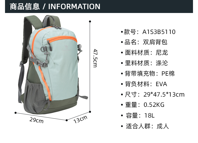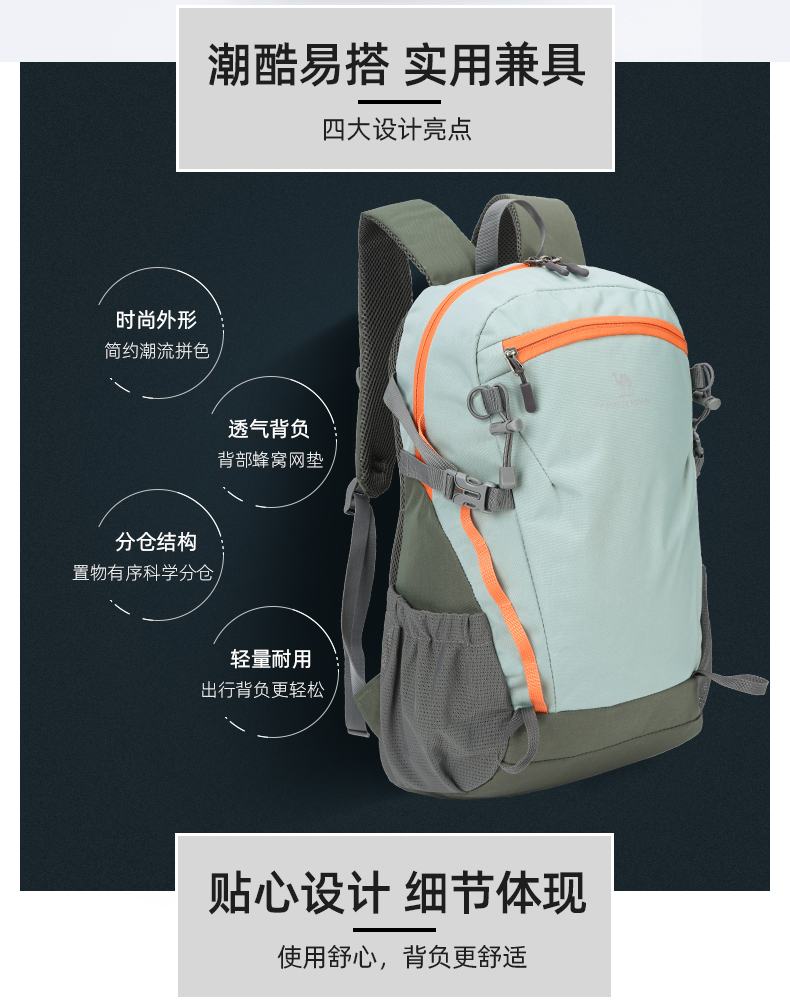 骆驼CAMEL双肩包超轻徒步旅行登山包潮 双肩背包A1S3B5110 个 深青色
