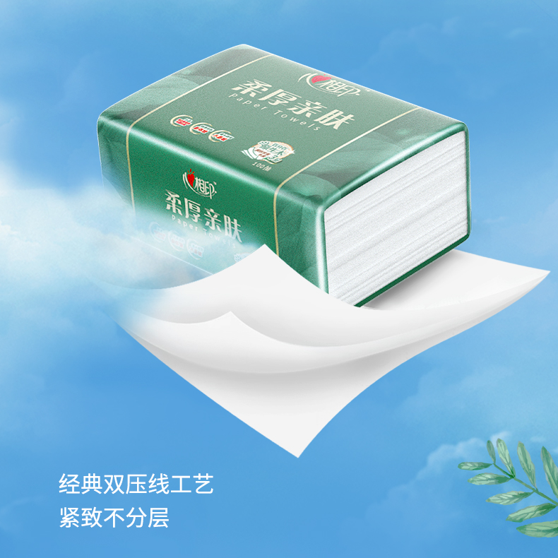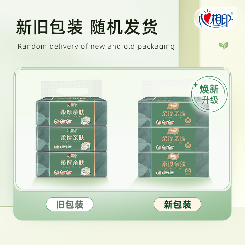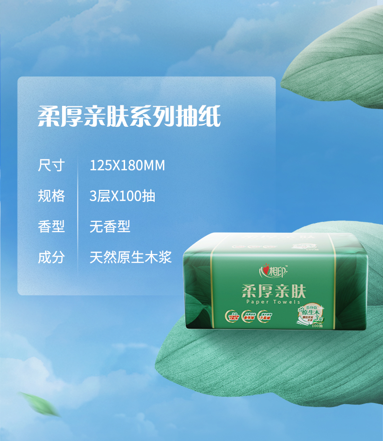 心相印柔厚亲肤抽纸 3层100抽*3包DT100/新老包装随机发货(单位:提) 绿色