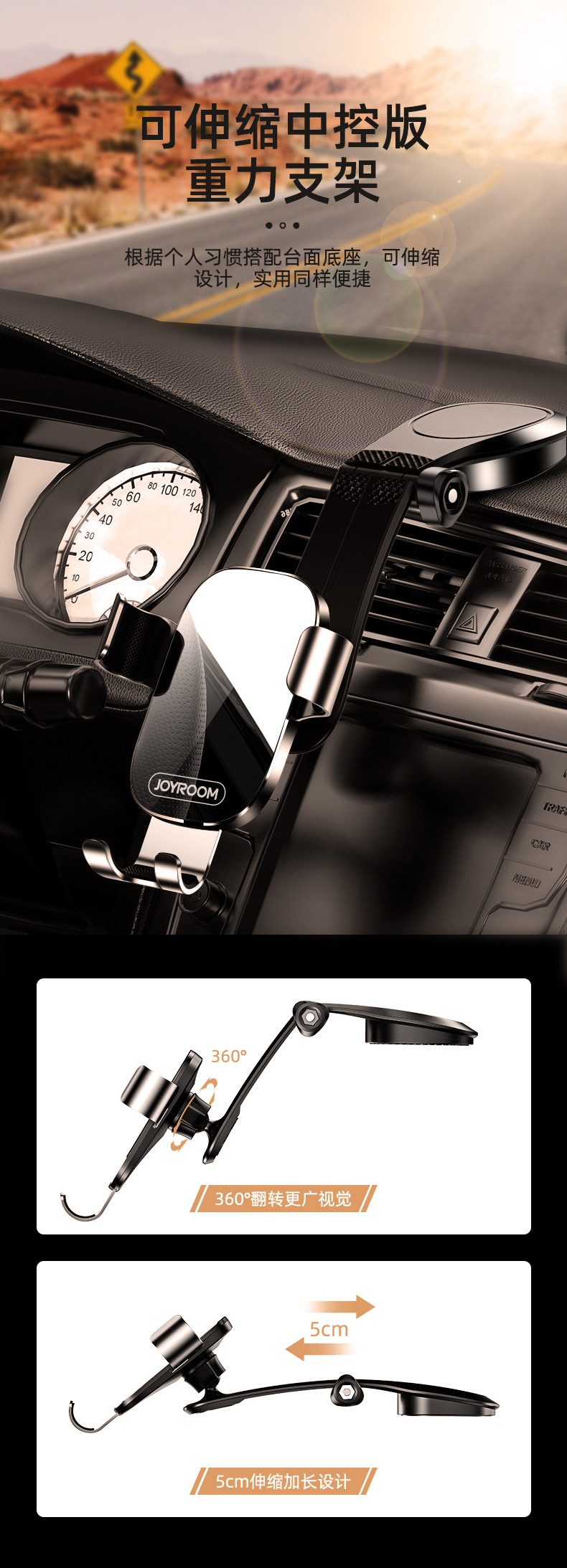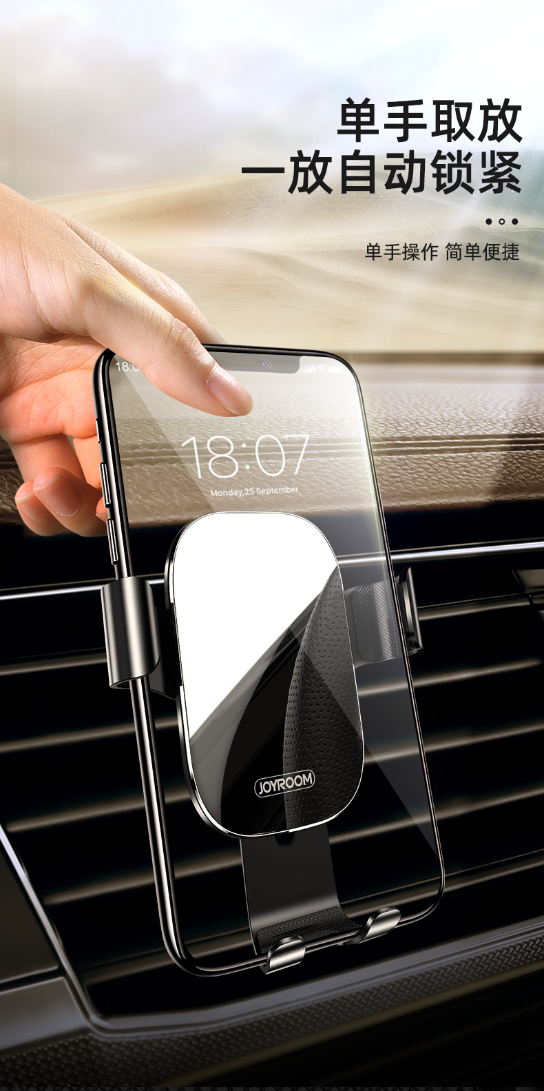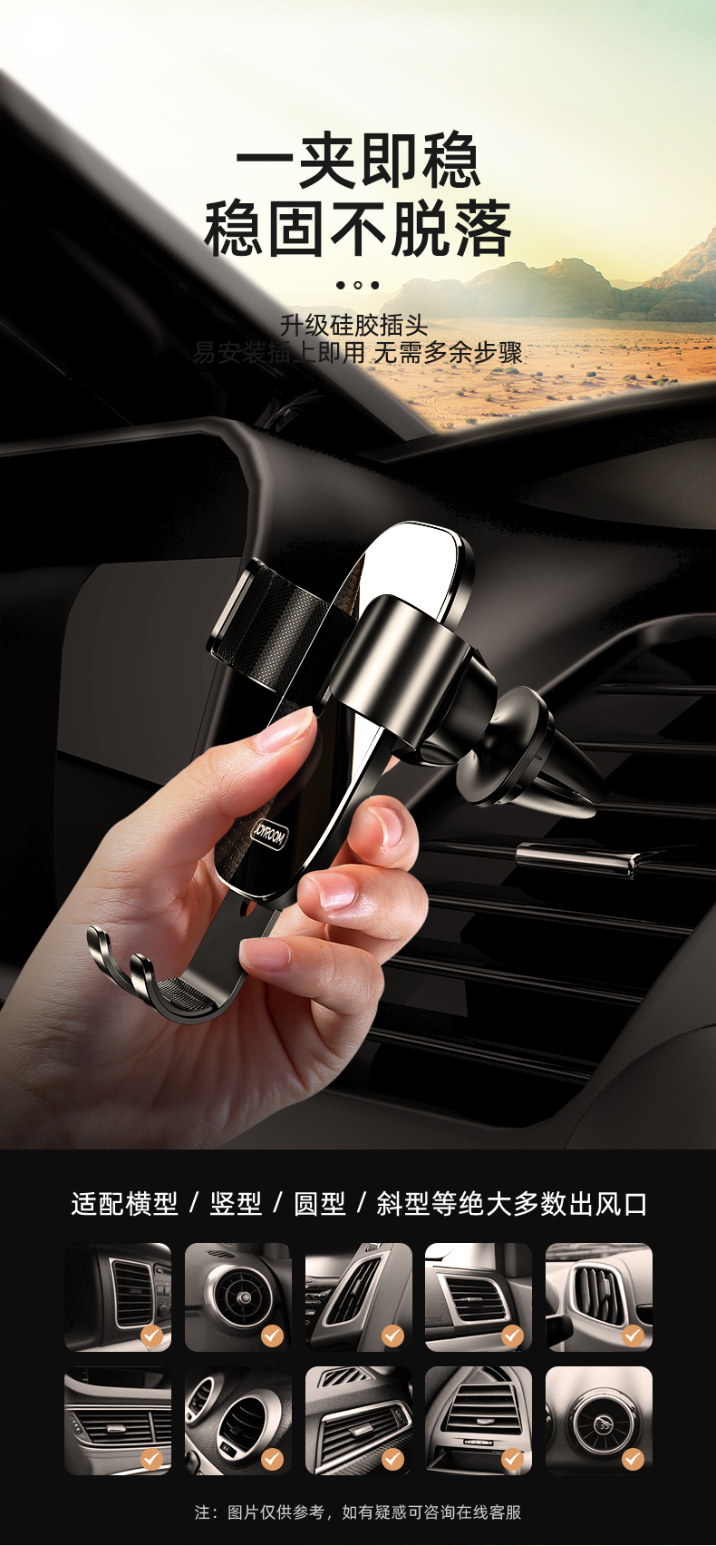 机乐堂光影系列出风口重力支架JR-ZS198(单位:个) 黑色