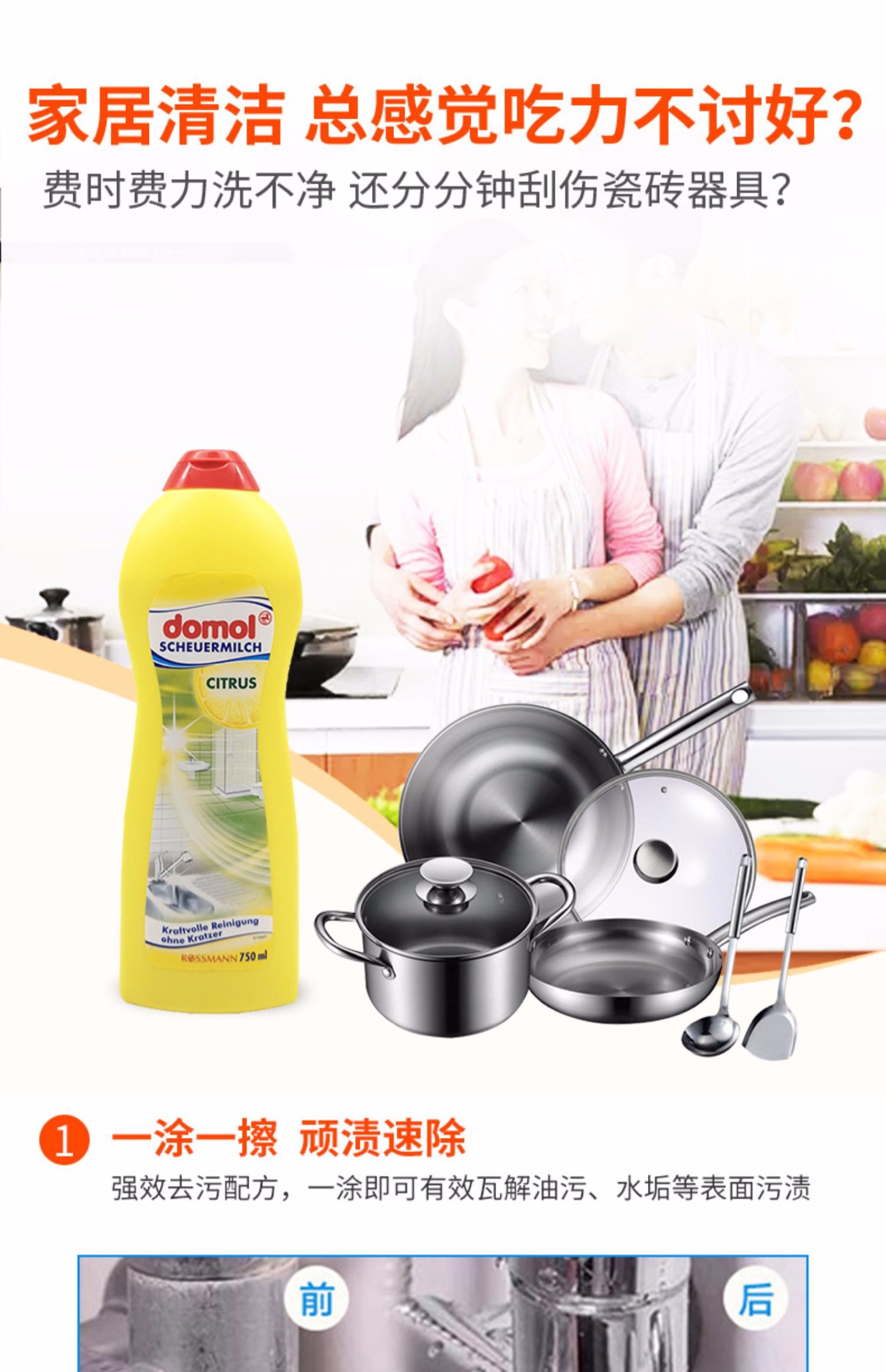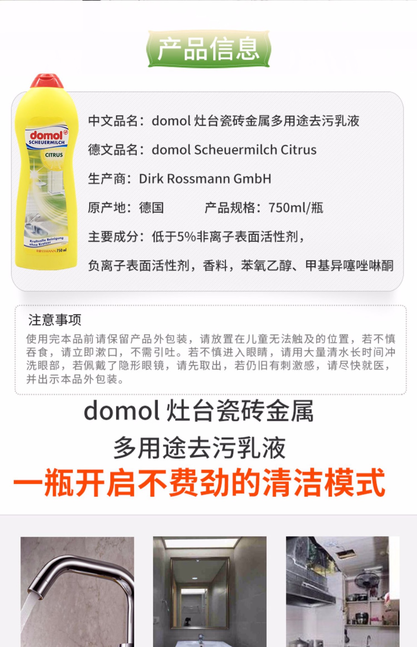 domol 灶台瓷砖金属多用途去污乳液 混色