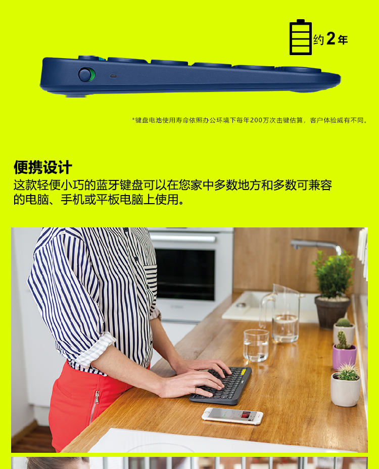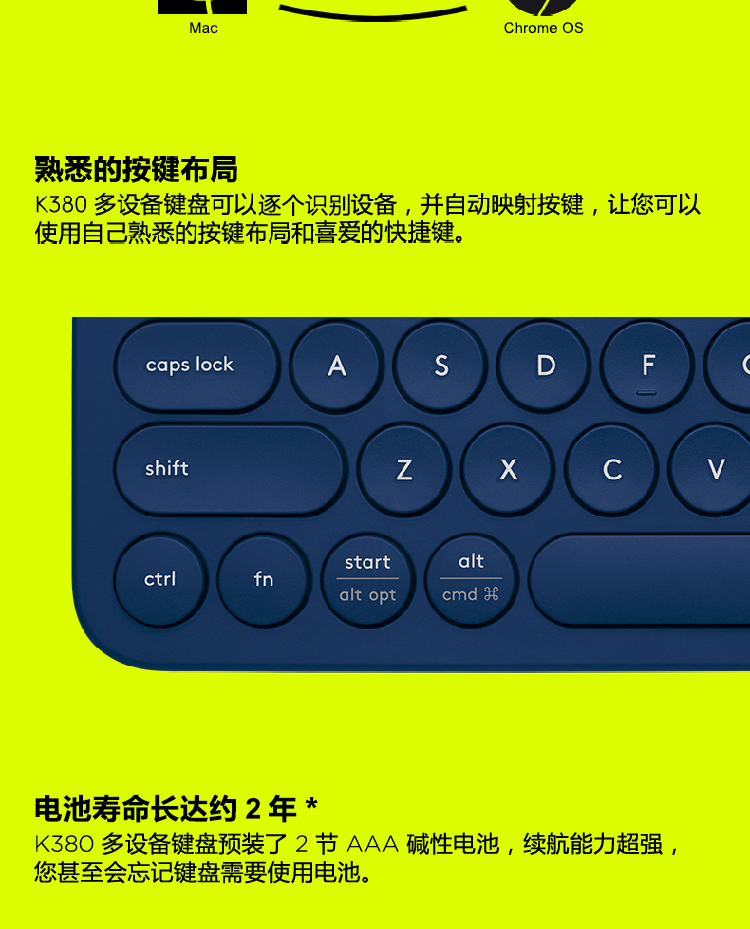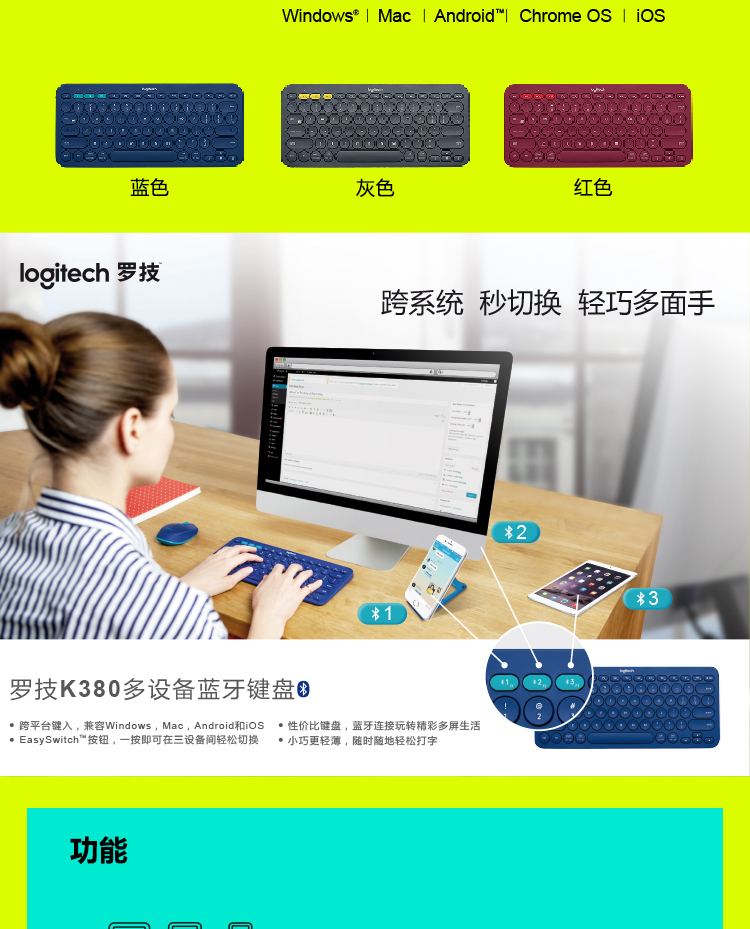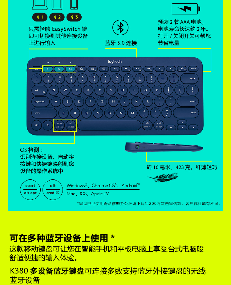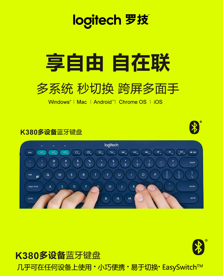 罗技K380 多设备蓝牙键盘 蓝色