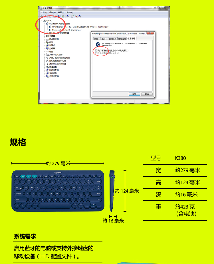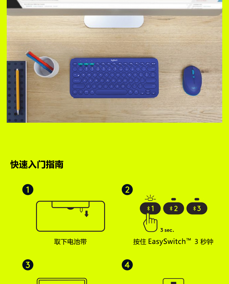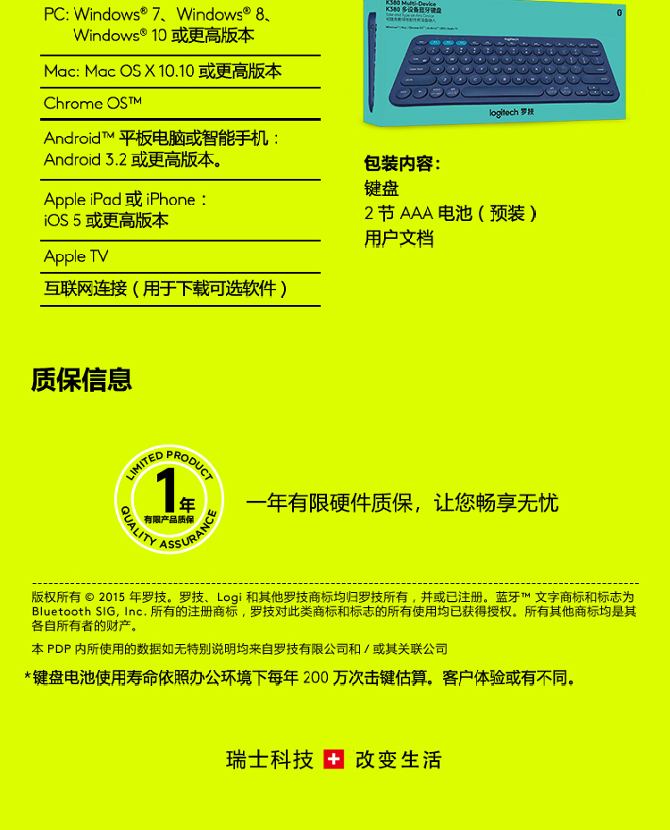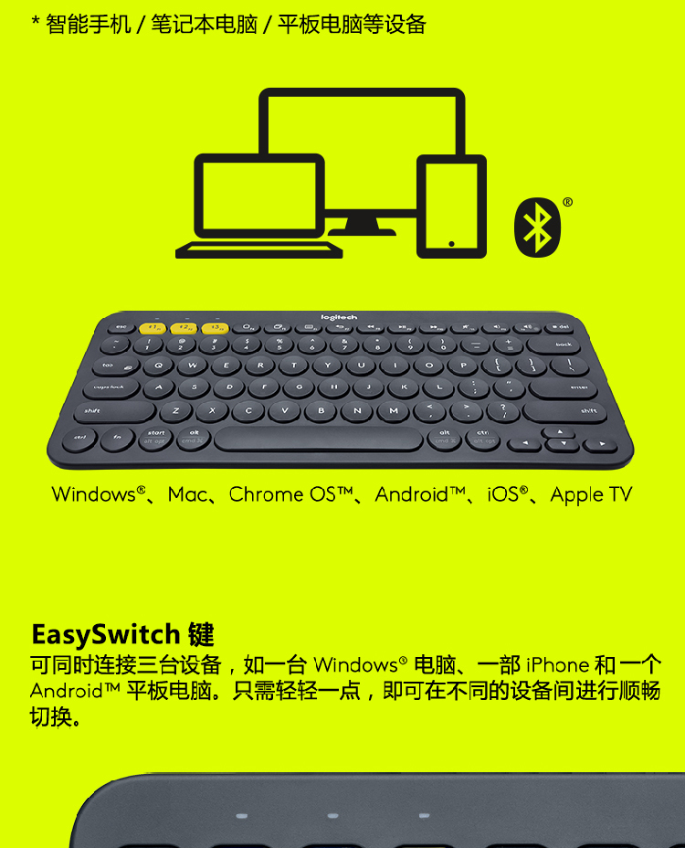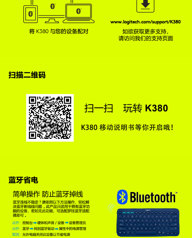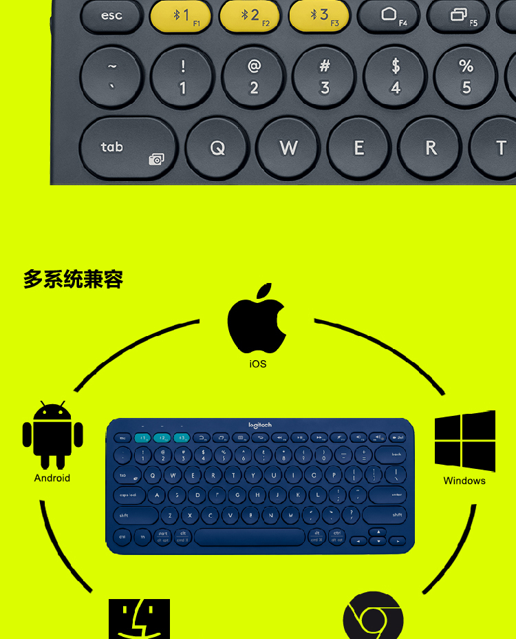 罗技K380 多设备蓝牙键盘 蓝色