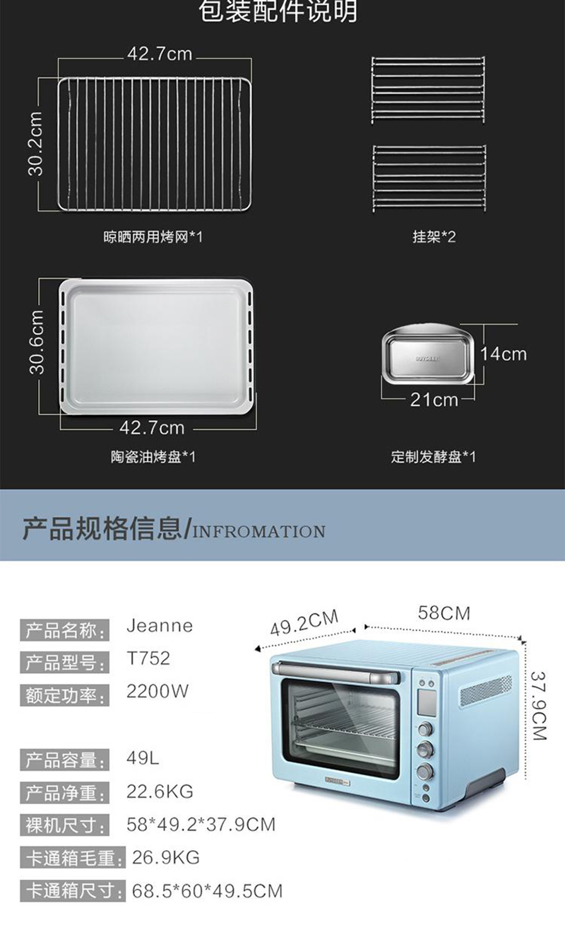 北鼎/Buydeem T752家用烤箱多功能烘焙 全自动电烤箱独立控温49L 蓝色