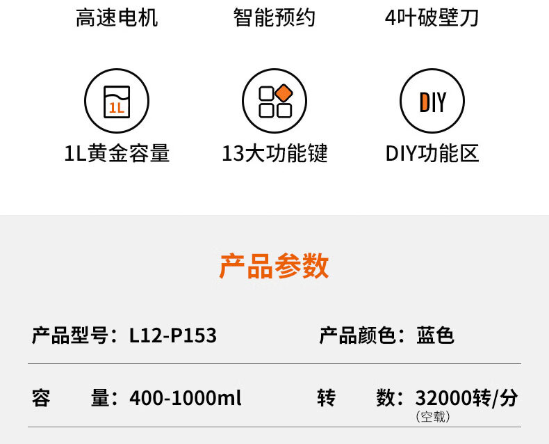 九阳(Joyoung)破壁机豆浆机 L12-P153 1L小容量/台 蓝色