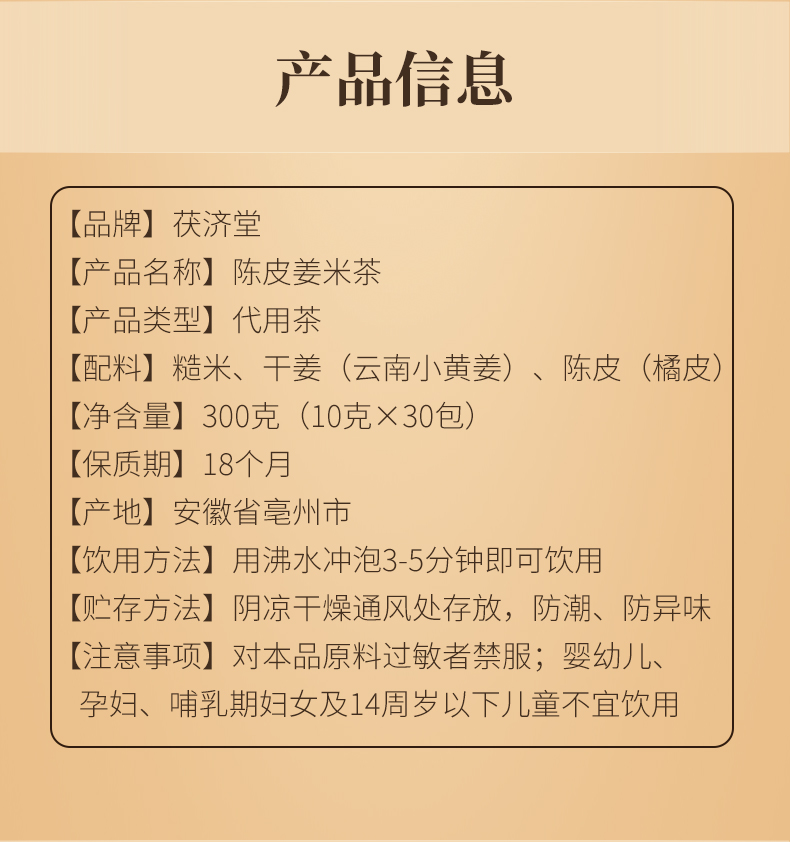 茯济堂陈皮姜米茶(针对胃宝宝 夏天定制)300g(10g*30包) 绿色