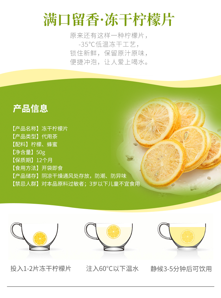 茯济堂0脂冻干柠檬片(最新上市)50克/盒 绿色