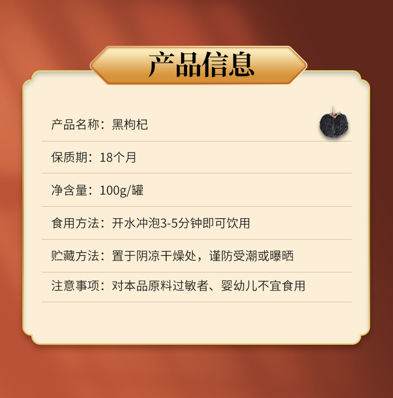 茯济堂青海黑枸杞(夏季一扎喝一天,3秒拉丝,花青素含量高)100克/罐 绿色
