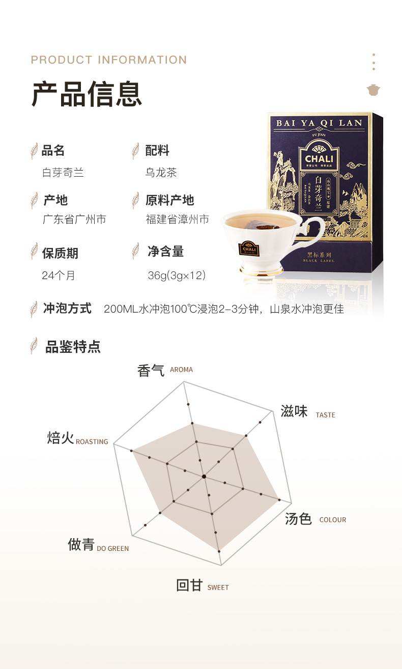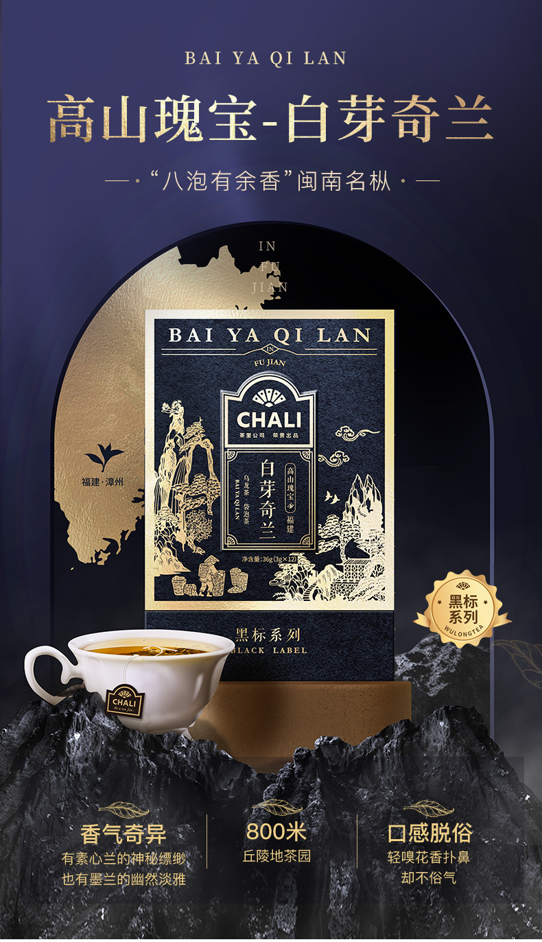 CHALI茶里黑标乌龙茶系列-白芽奇兰 盒装 曜石黑