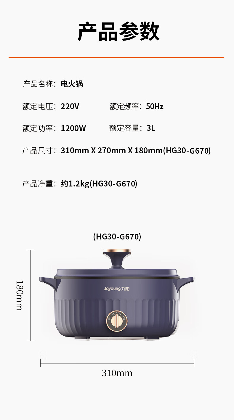 九阳(Joyoung)电火锅 3L HG30-G670(单位:台) 蓝色