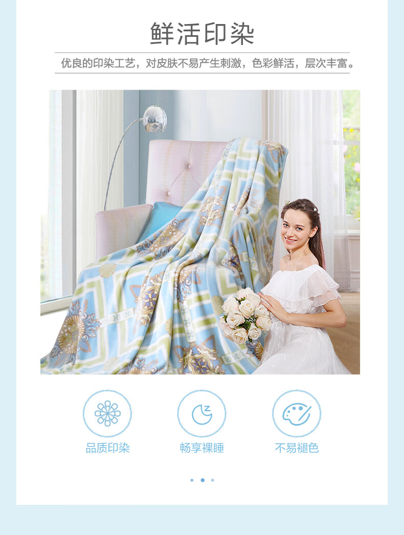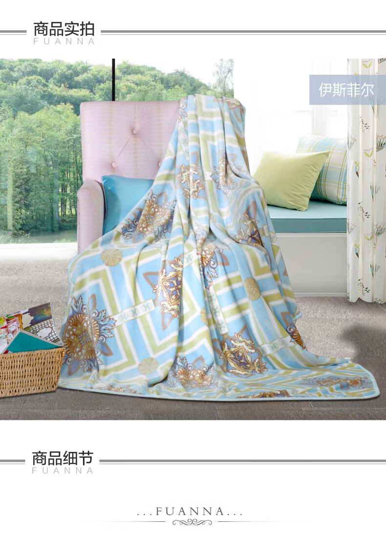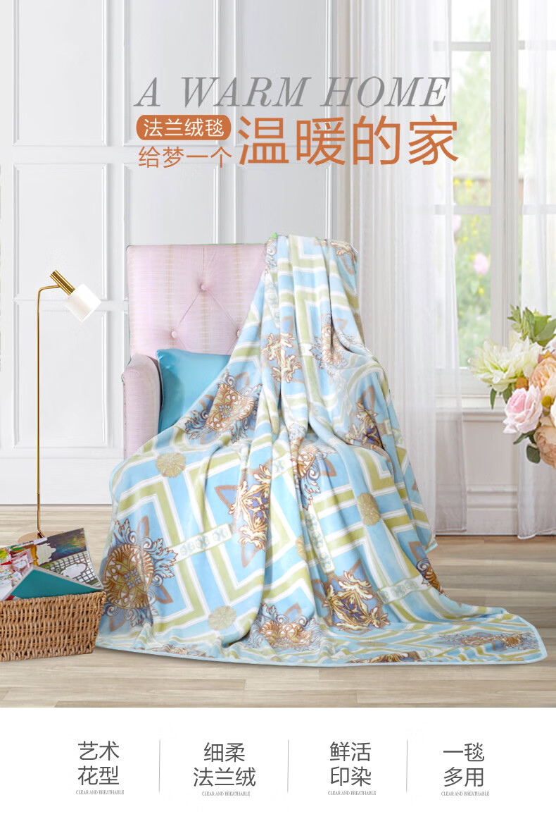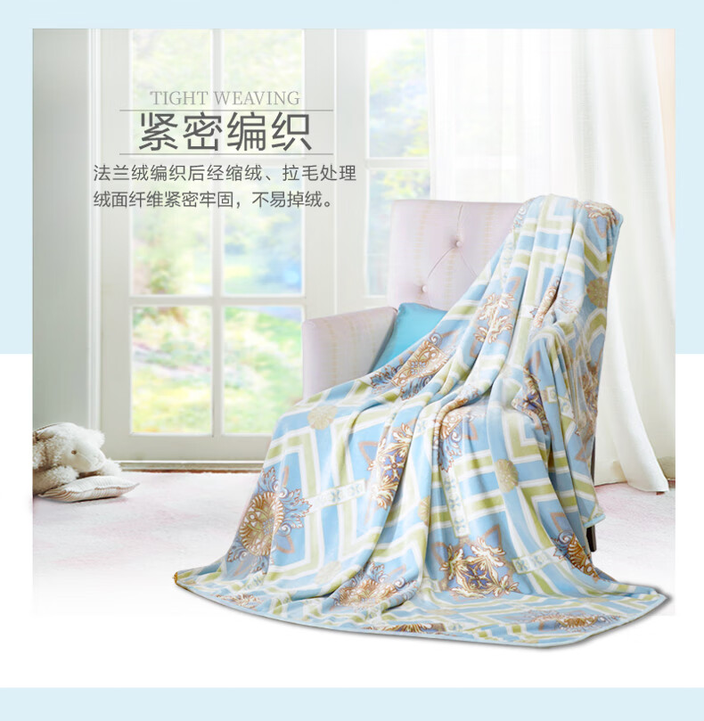 富安娜伊斯菲尔双人多功能法兰绒毯180*200CM胶袋装 蓝色
