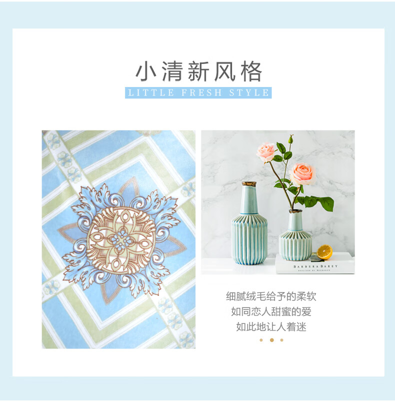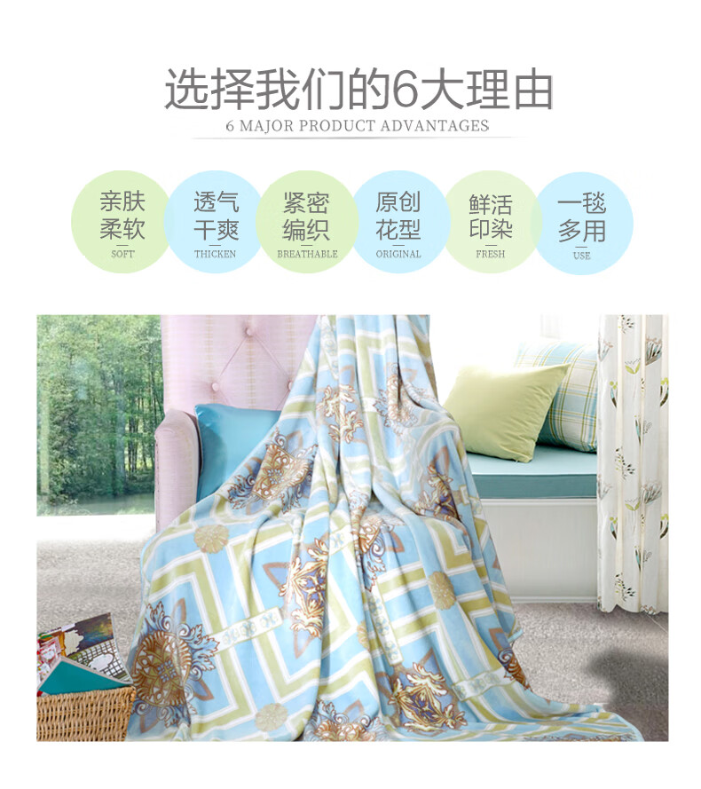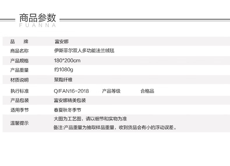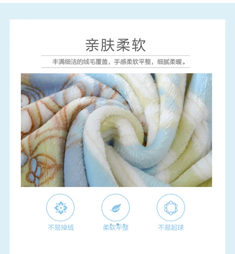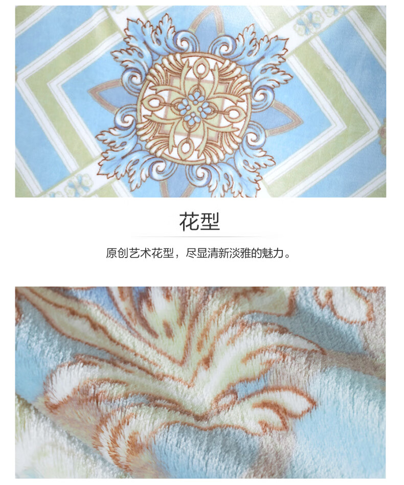 富安娜伊斯菲尔双人多功能法兰绒毯180*200CM胶袋装 蓝色