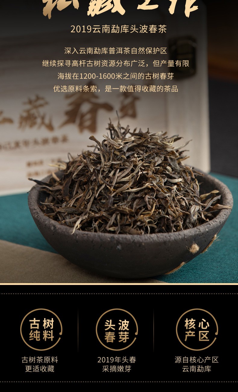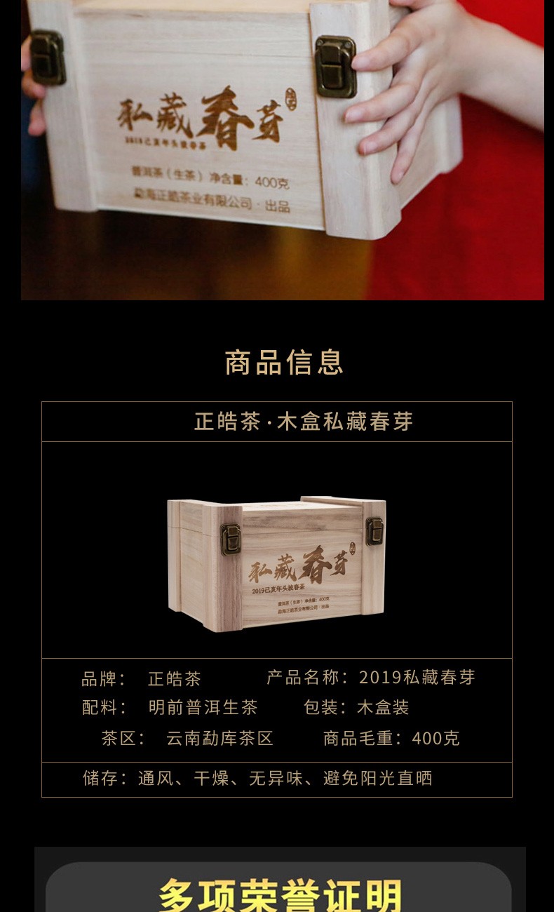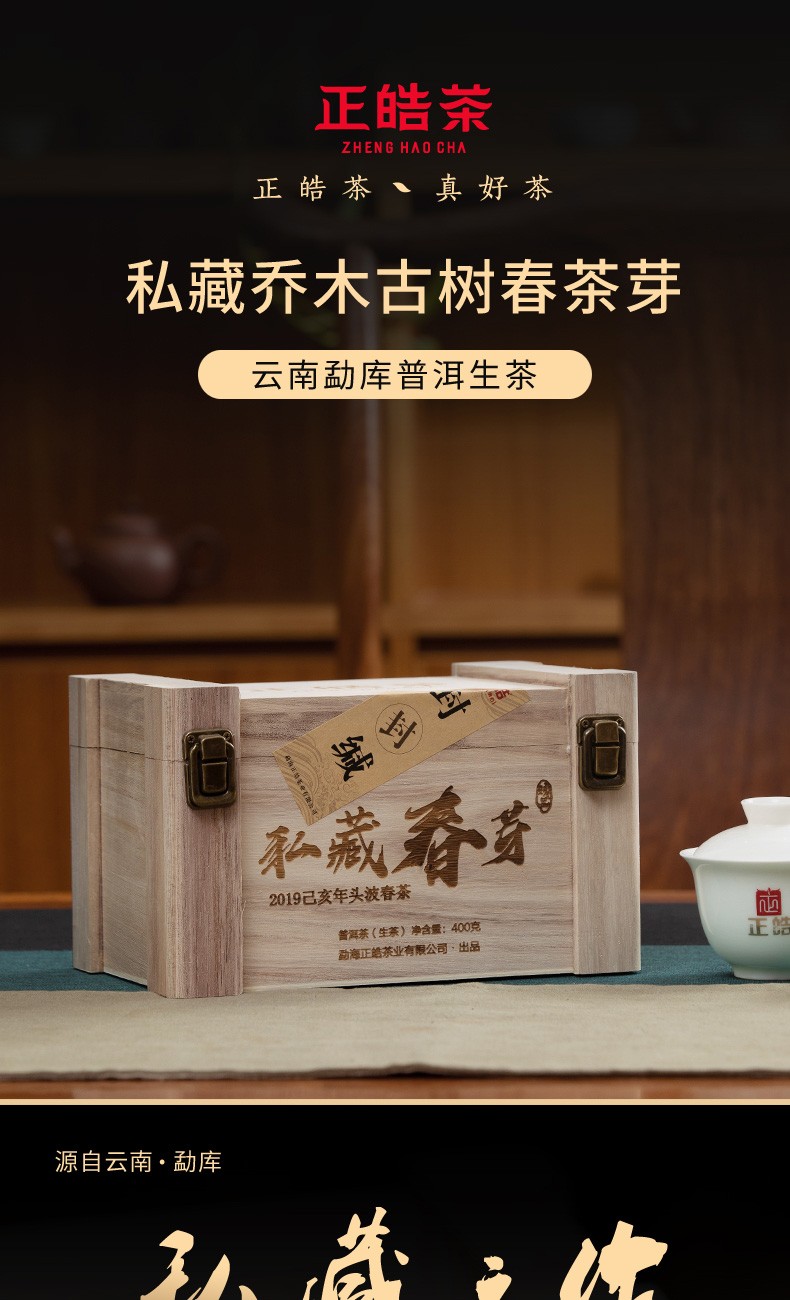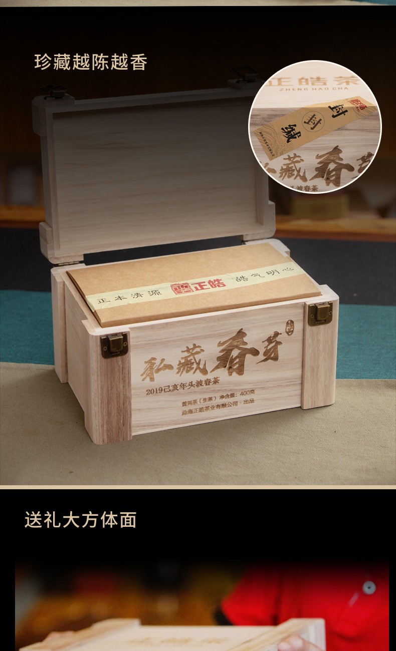 正皓茶普洱生茶散茶2019年明前云南高品质大叶种收藏自饮木盒装私藏春芽400g 私藏春芽