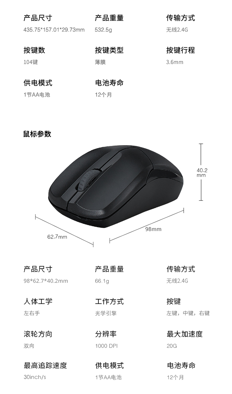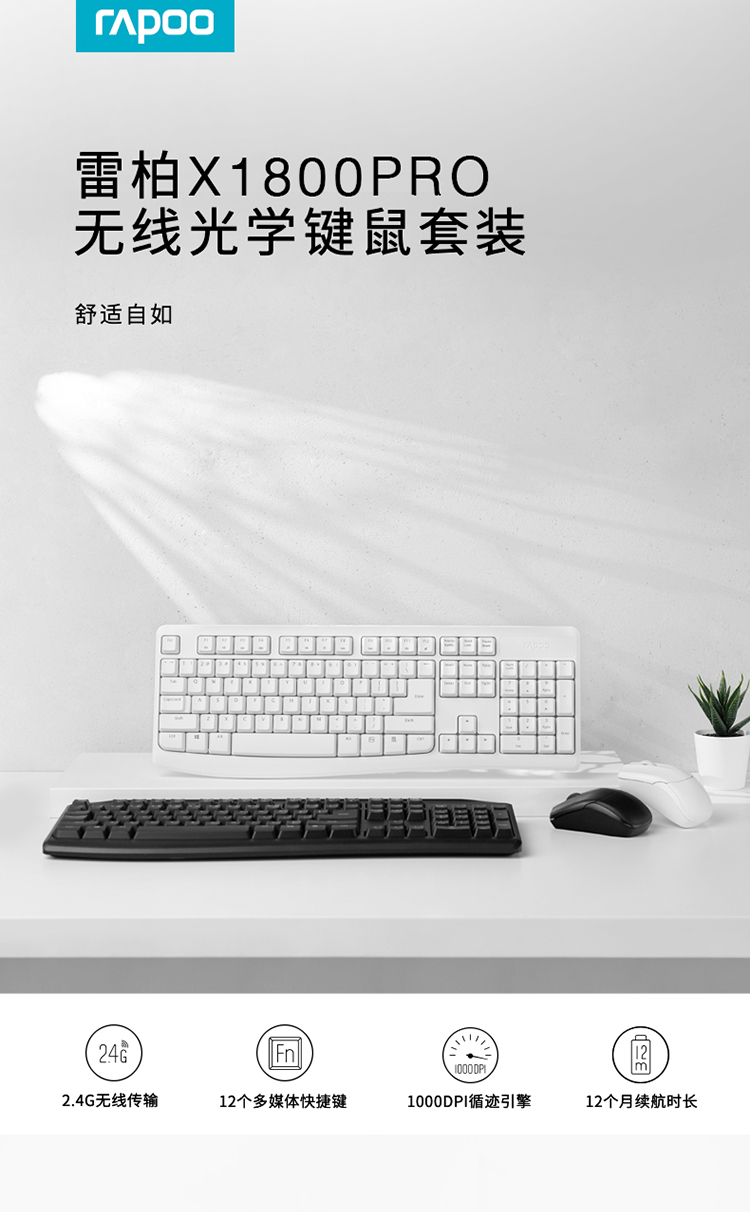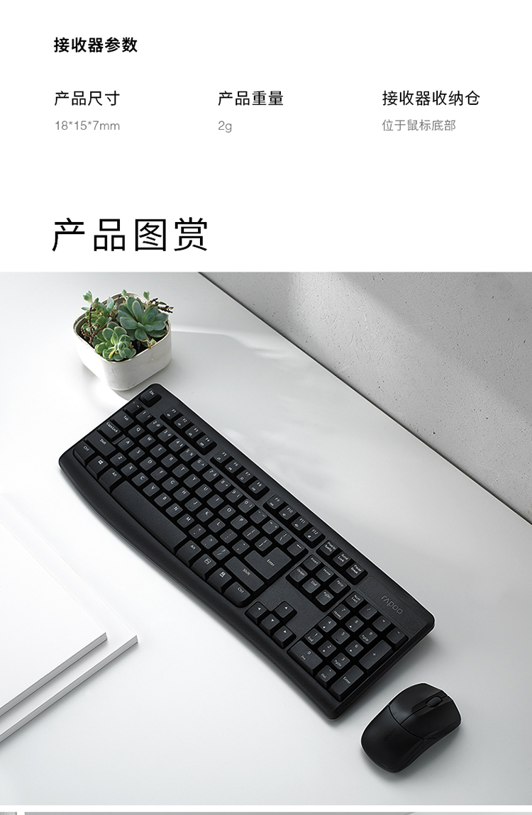 雷柏X1800PRO无线光学键鼠套装(黑色) 黑色