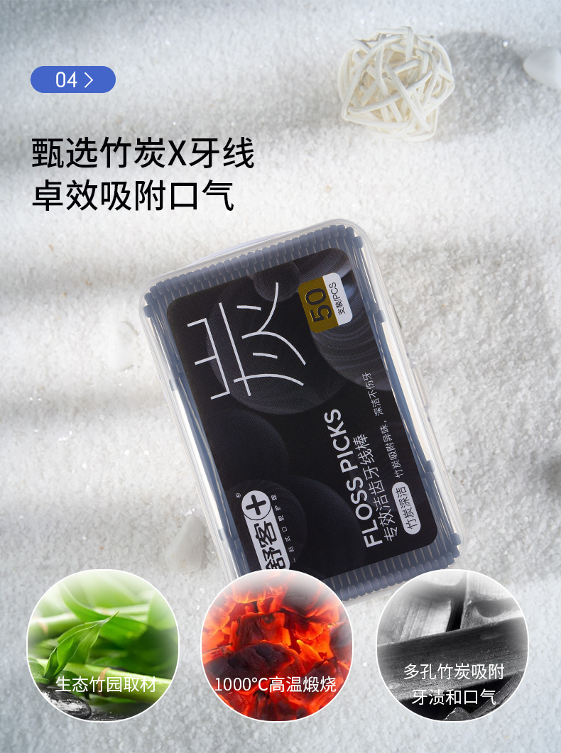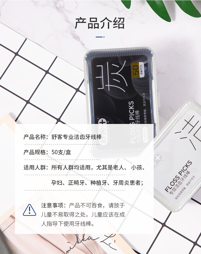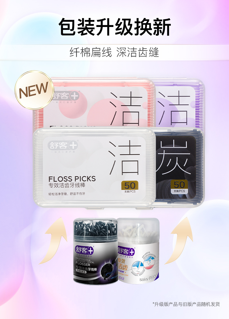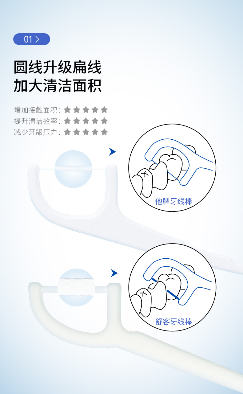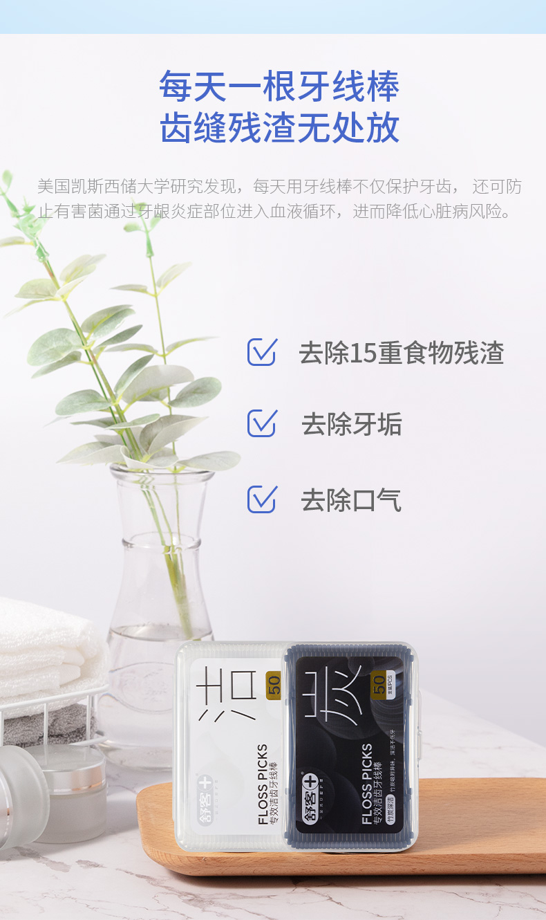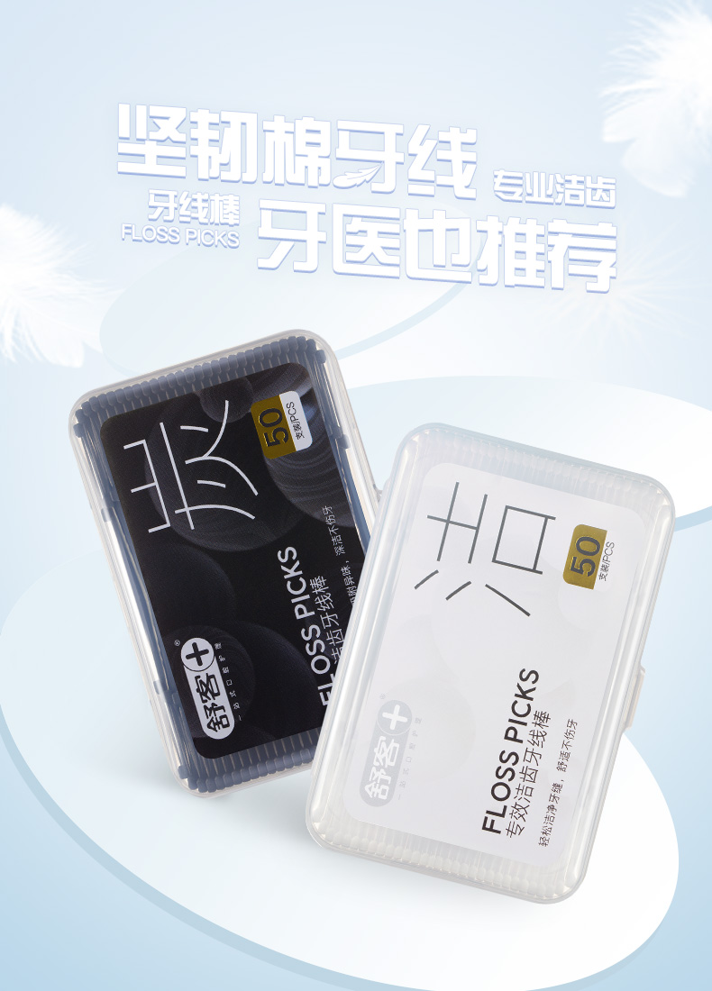 舒客 专业洁齿牙线棒50支*4盒 护龈扁线牙签线(颜色随机) 白色