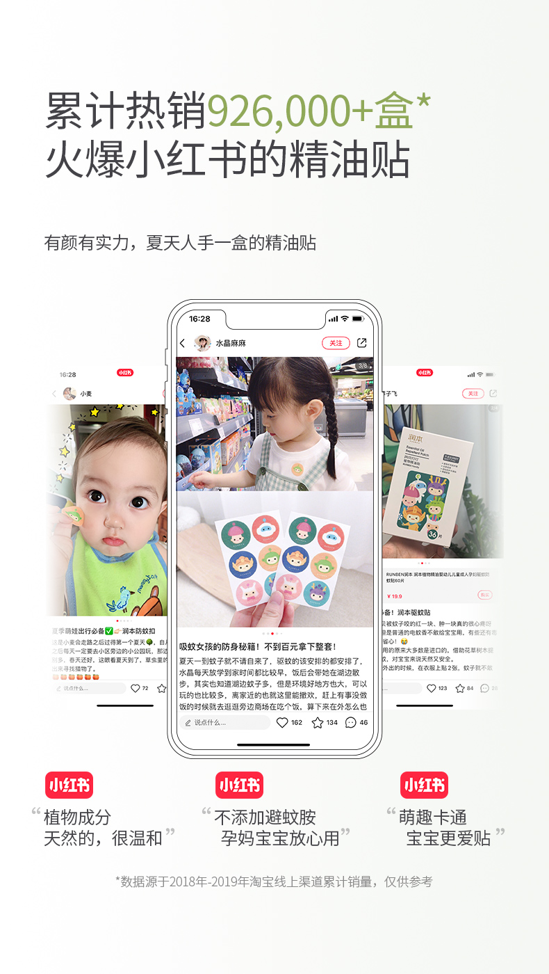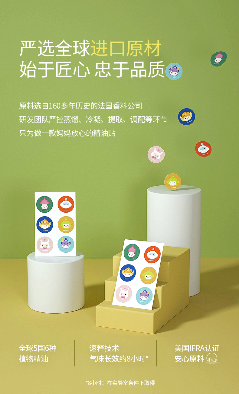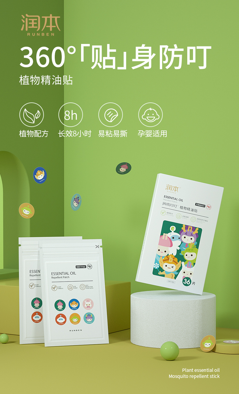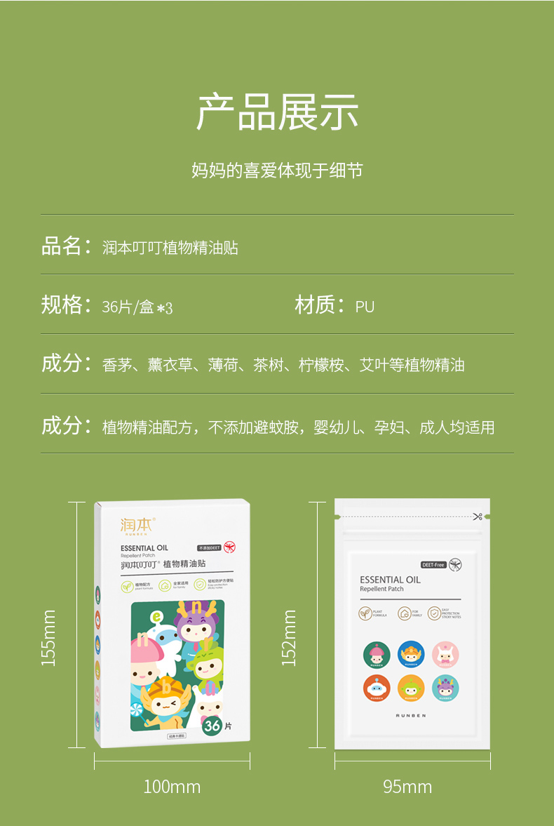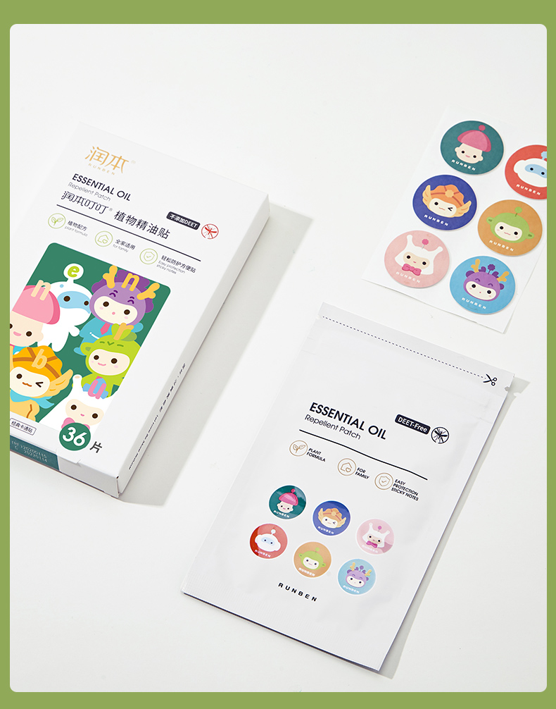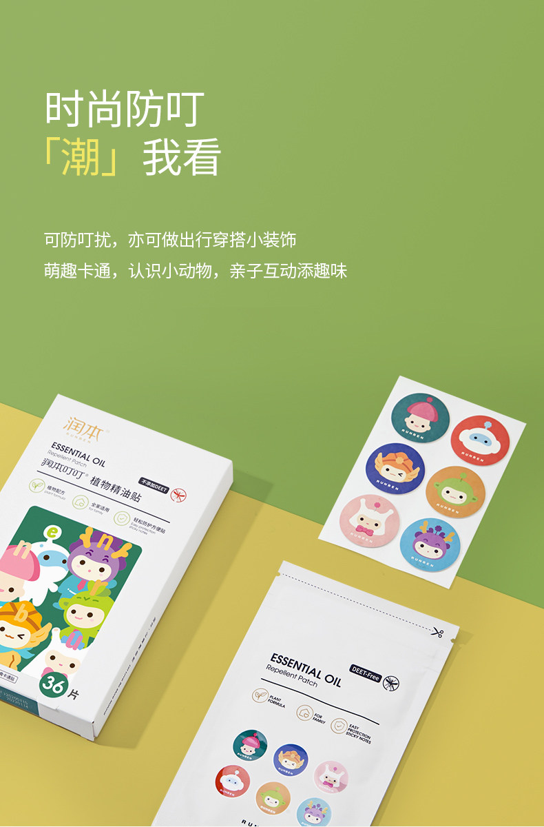 润本叮叮植物精油贴 经典卡通贴36片装*3盒 白色