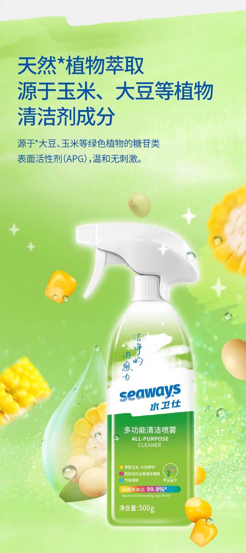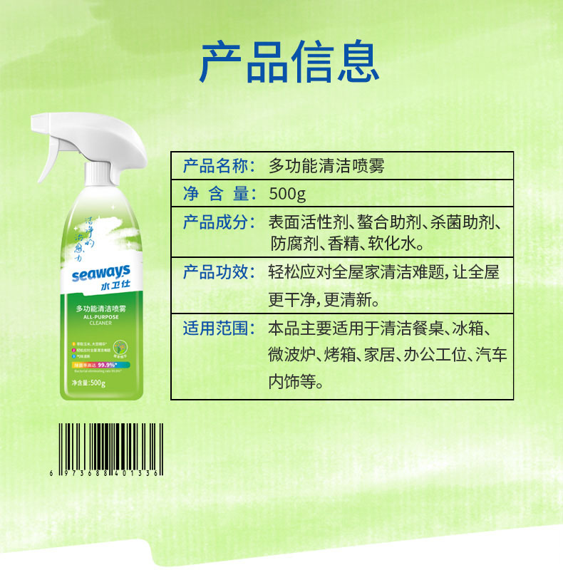 水卫仕 多功能清洁喷雾 500g×1瓶 绿色