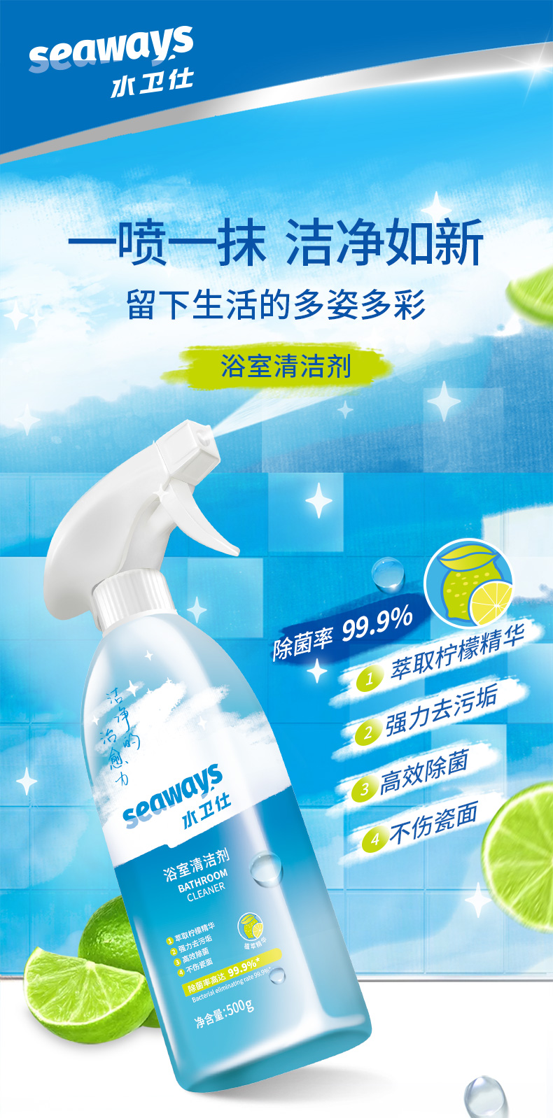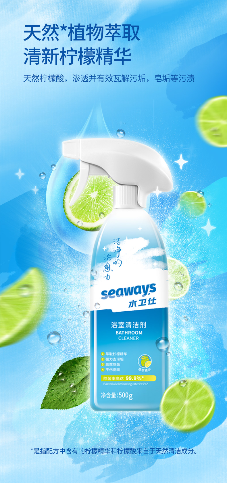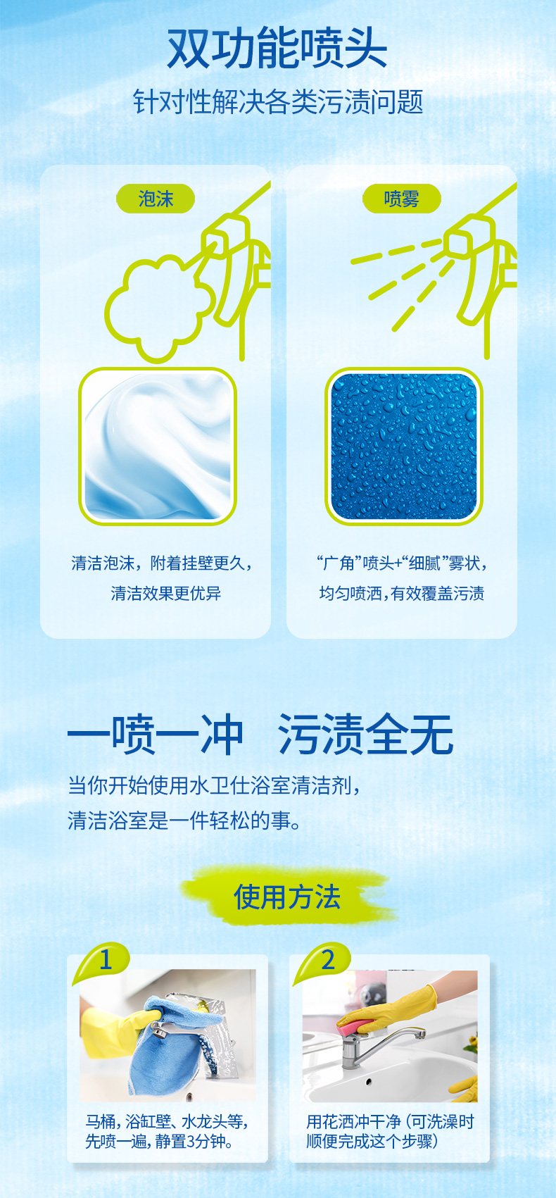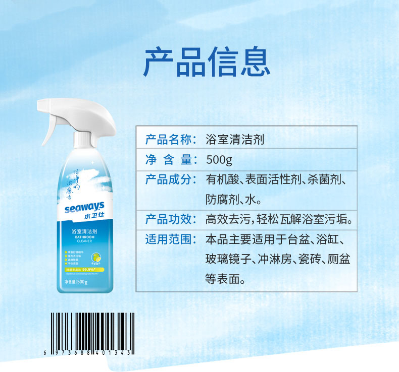水卫仕 浴室清洁剂 500g×1瓶 天蓝色