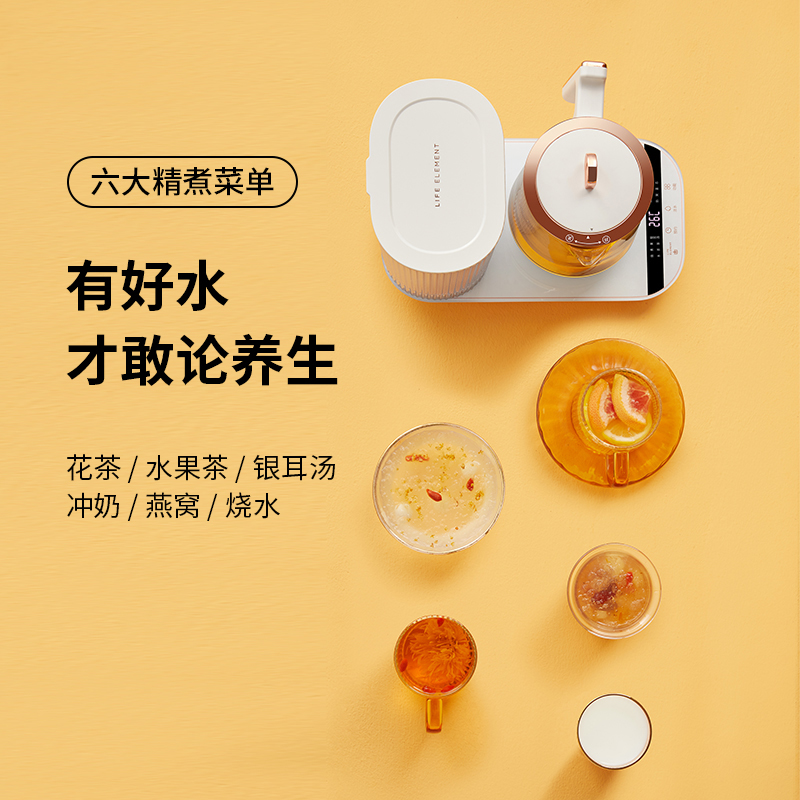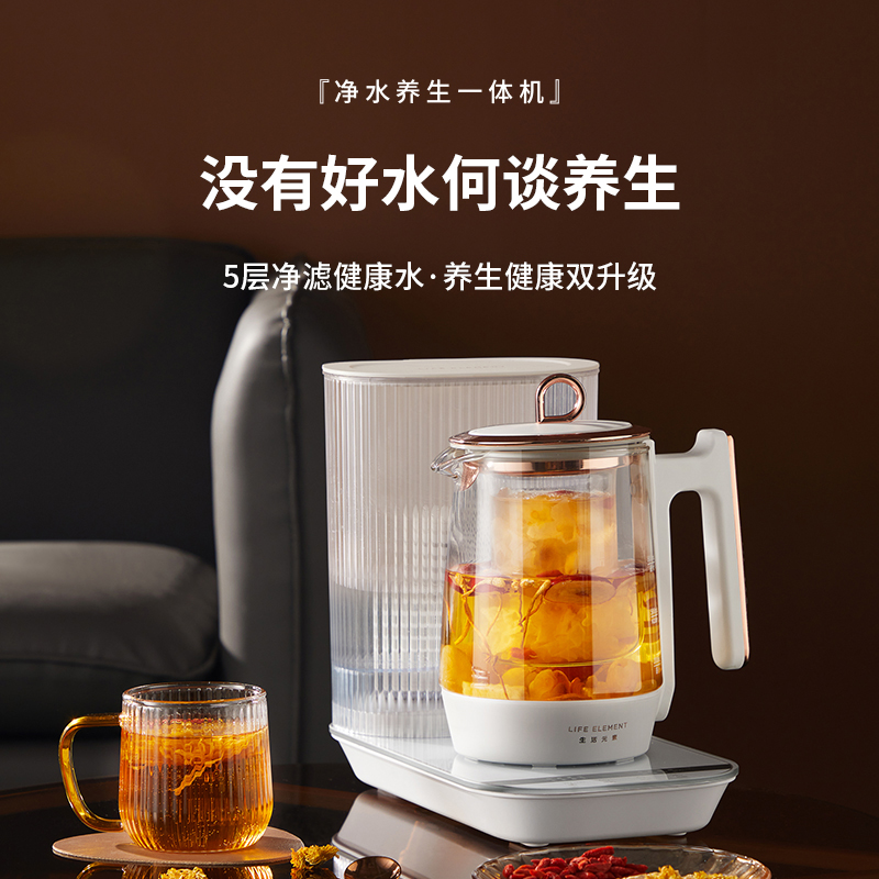 生活元素(LIFE ELEMENT)台式净水机加热净水器净饮一体机养生壶 电水壶加热二合一免安装上水烧水壶迷你茶吧机I168 0.8L台 白色
