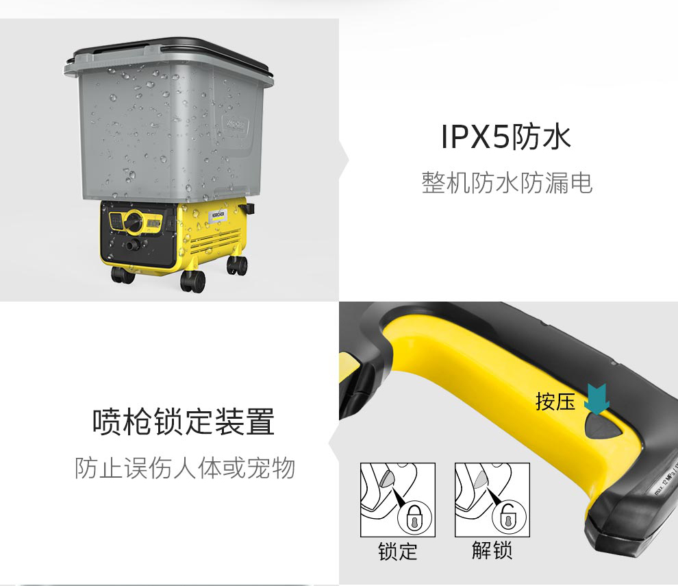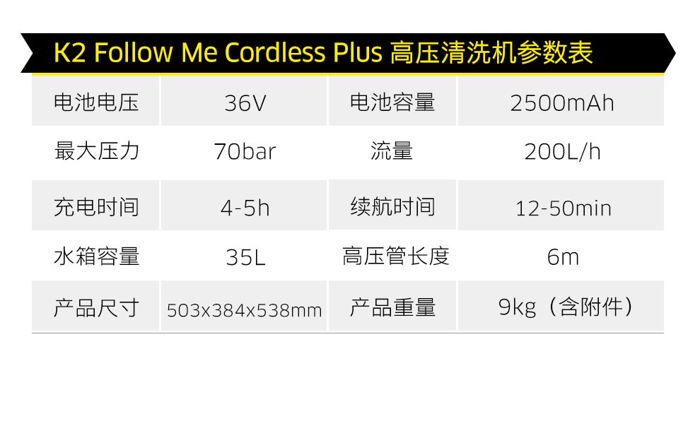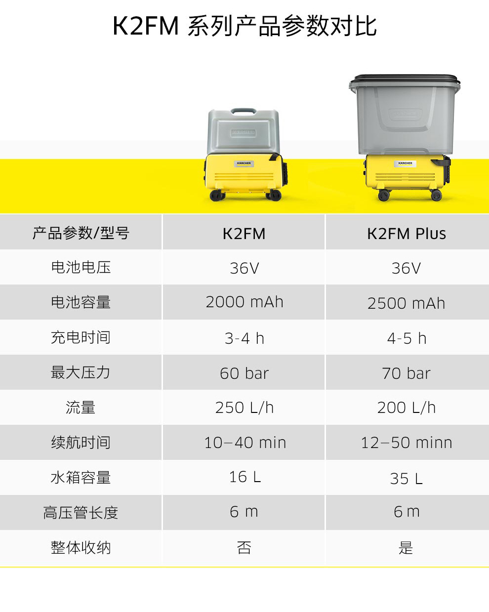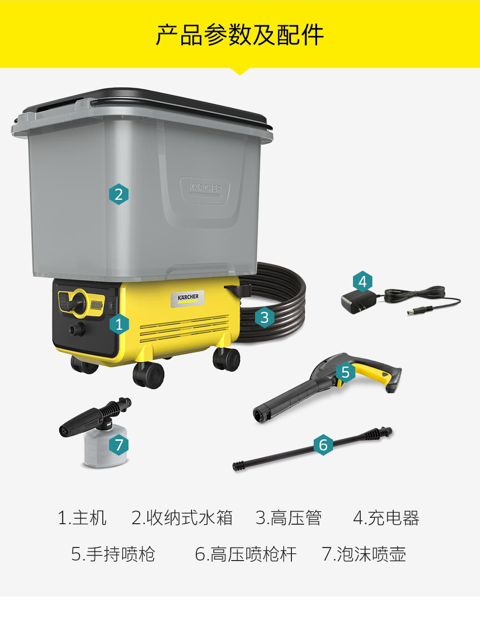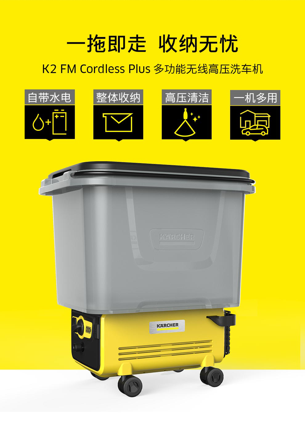 KARCHER德国卡赫 家用高压锂电无线洗车机清洗机 洗车水枪 自带35L水箱 IPX5级防水 适合高层住户洗车 K2FMP 混色