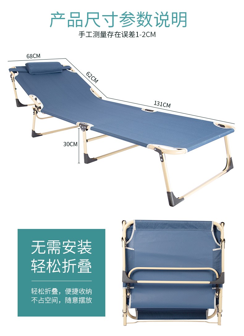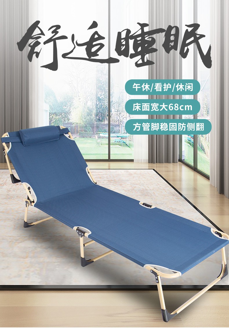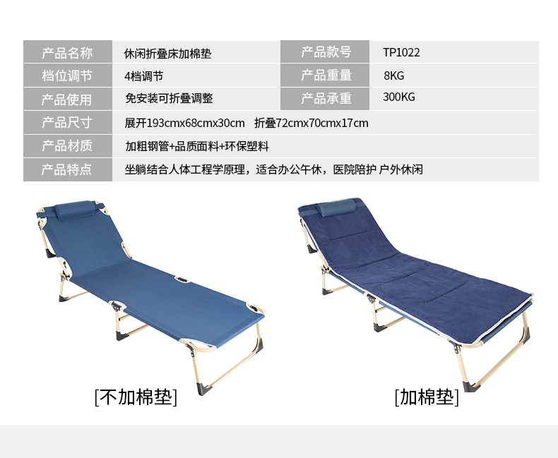 三极户外(Tri-polar)折叠床躺椅办公室午睡午休简易单人陪护床便携行军床TP1022 藏青+棉垫 193*68CM 极光蓝