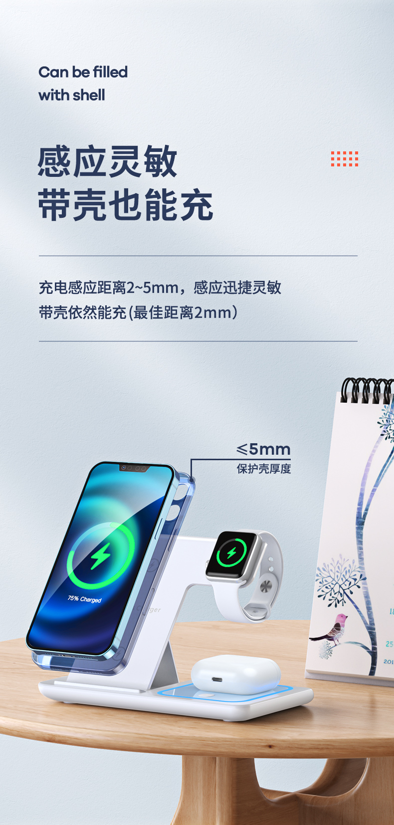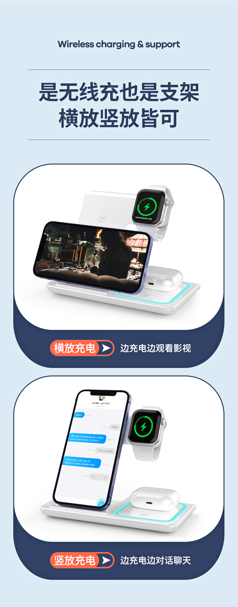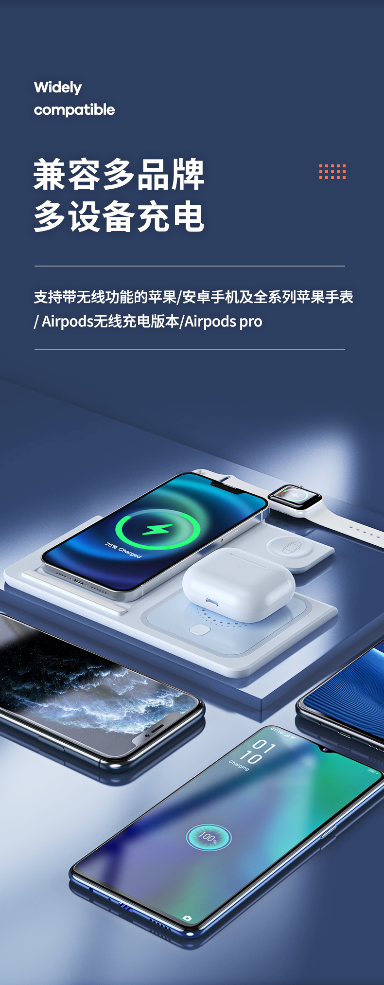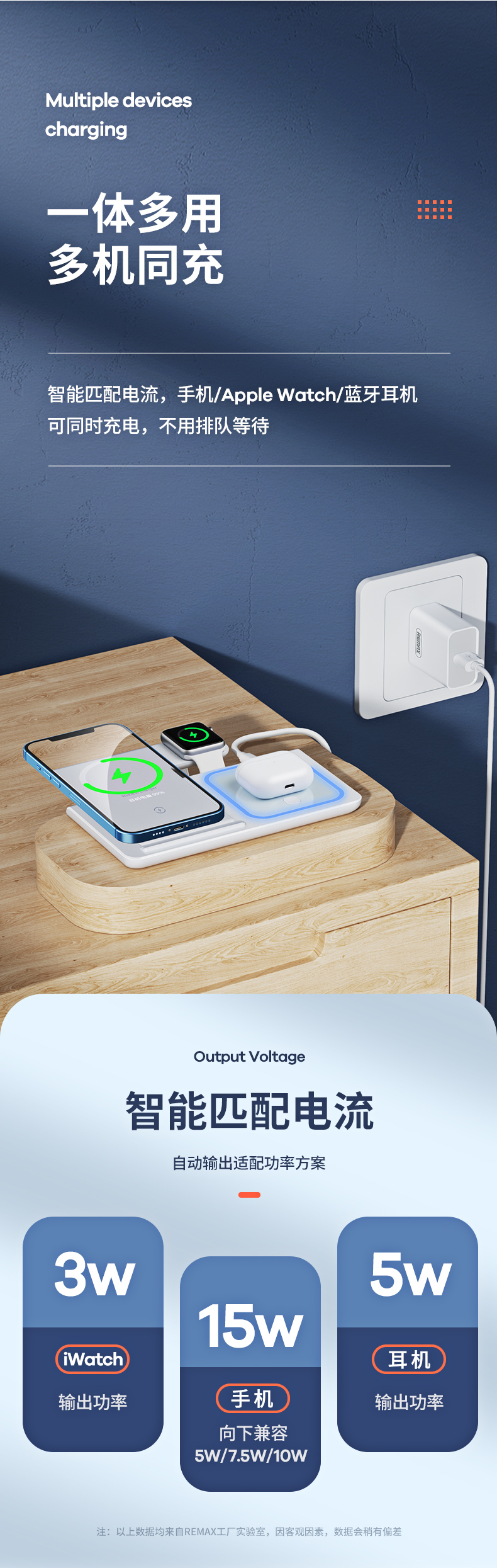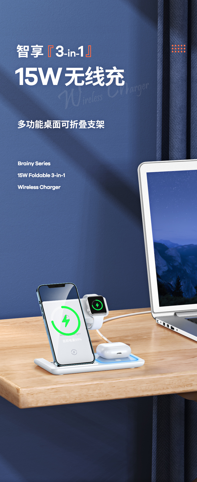 REMAX智享系列15W多功能 桌面可折叠支架 三合一无线充电器RP-W53 白色