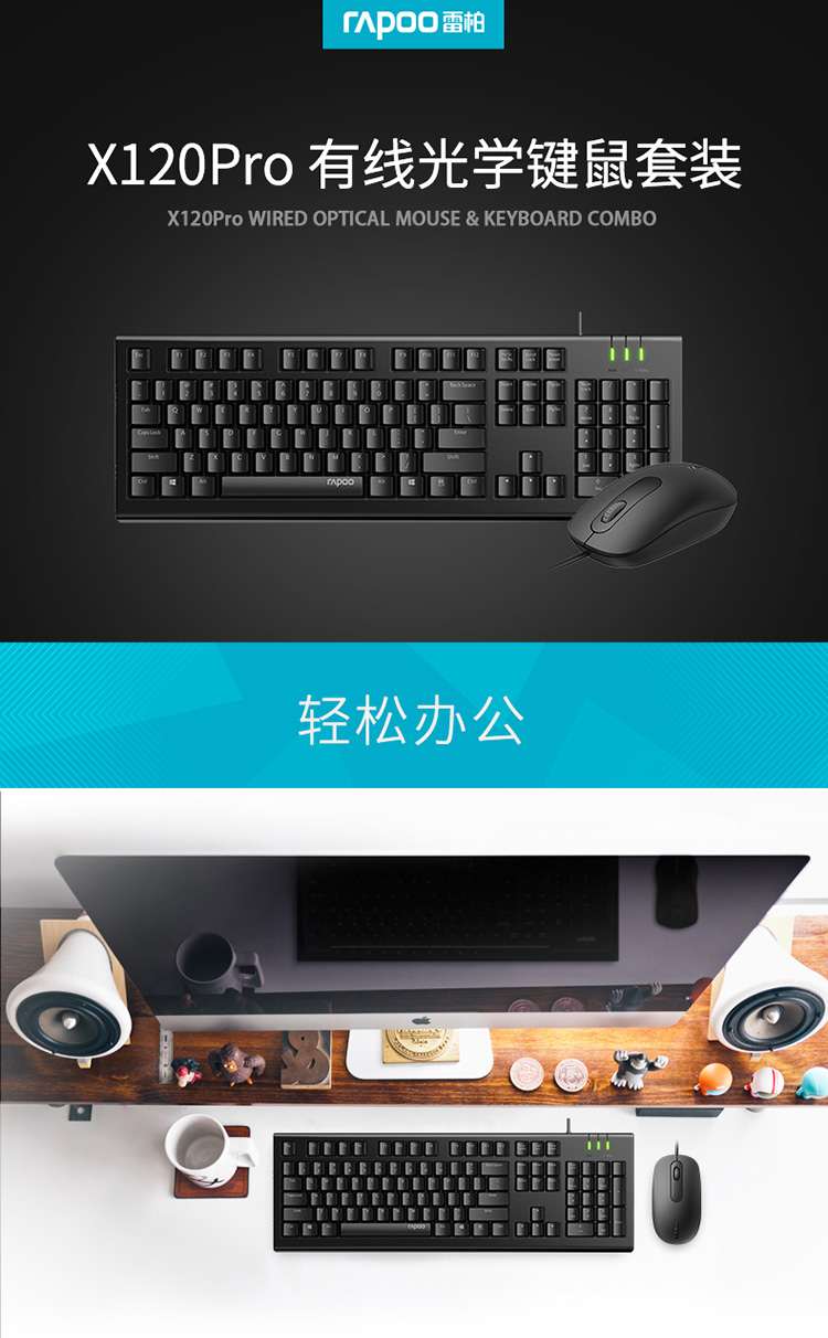 雷柏办公有线键盘鼠标套装USB电脑键鼠X120PRO/套 黑色