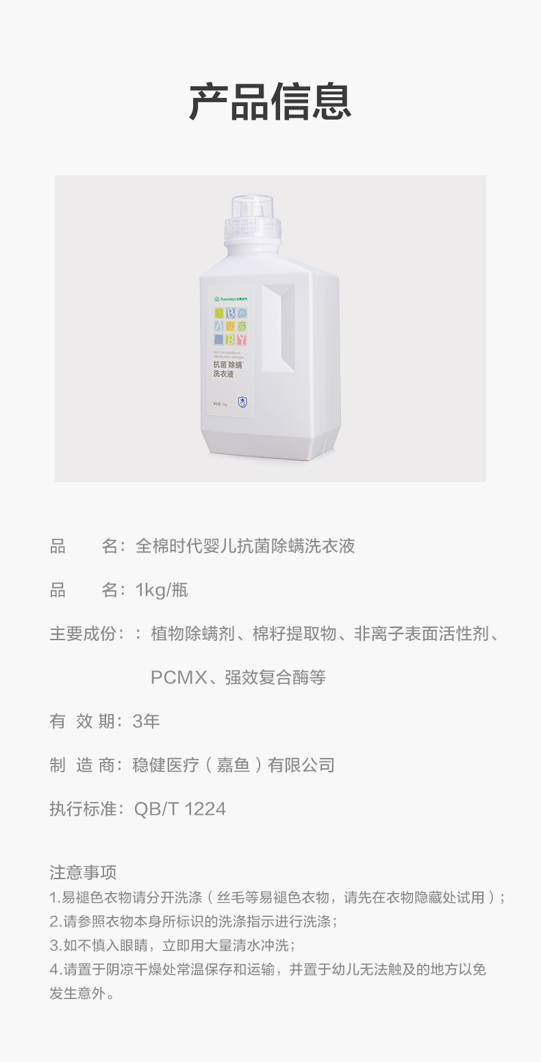 全棉时代抗菌除螨洗衣液1L(单位:瓶) 白色