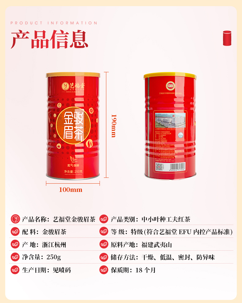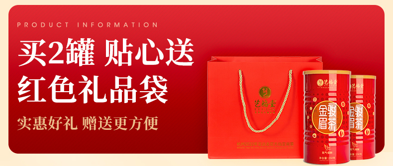 艺福堂 茶叶红茶 桐木关金骏眉 武夷山原产250g EFU10+
