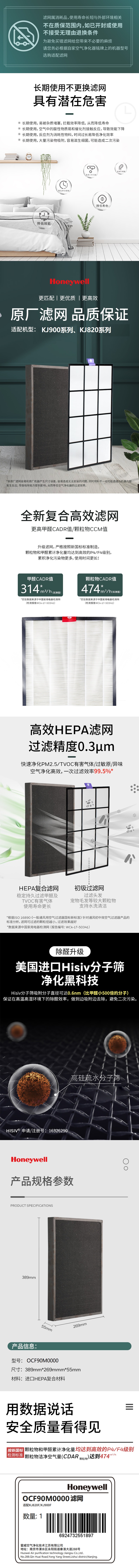 霍尼韦尔(honeywell) 空气净化器滤芯 复合滤网OCF90M0000( 适用于KJ820F/KJ900F系列) 2号复合滤网 白色