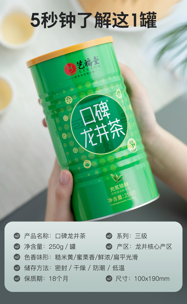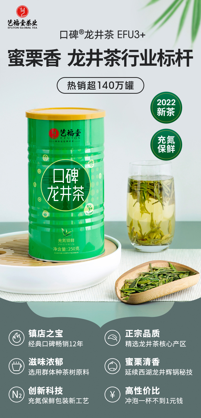 艺福堂2022新茶口碑龙井 250g/罐EFU3+