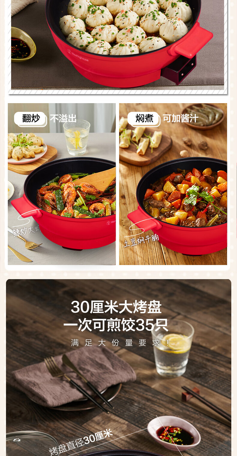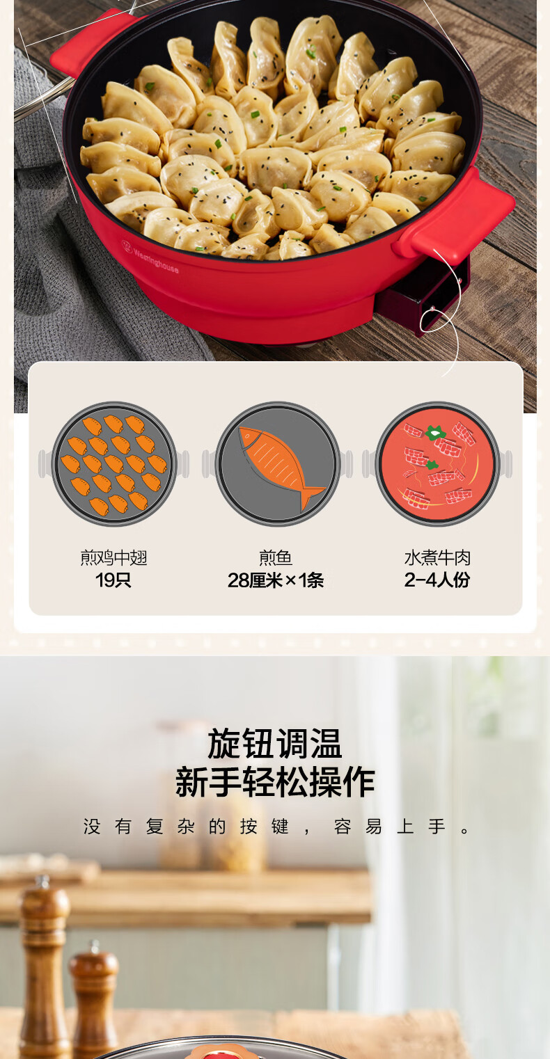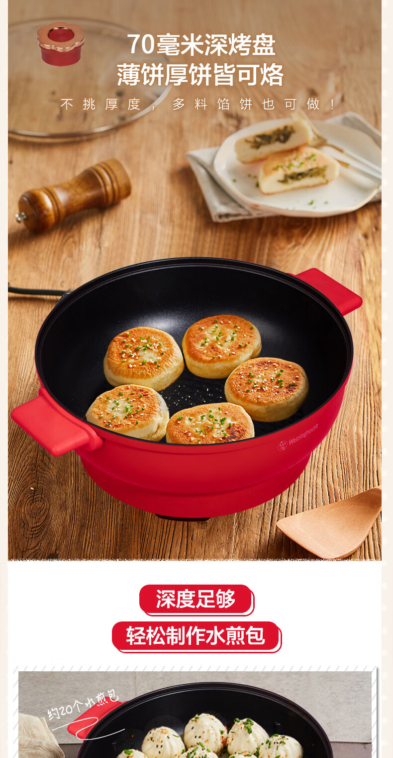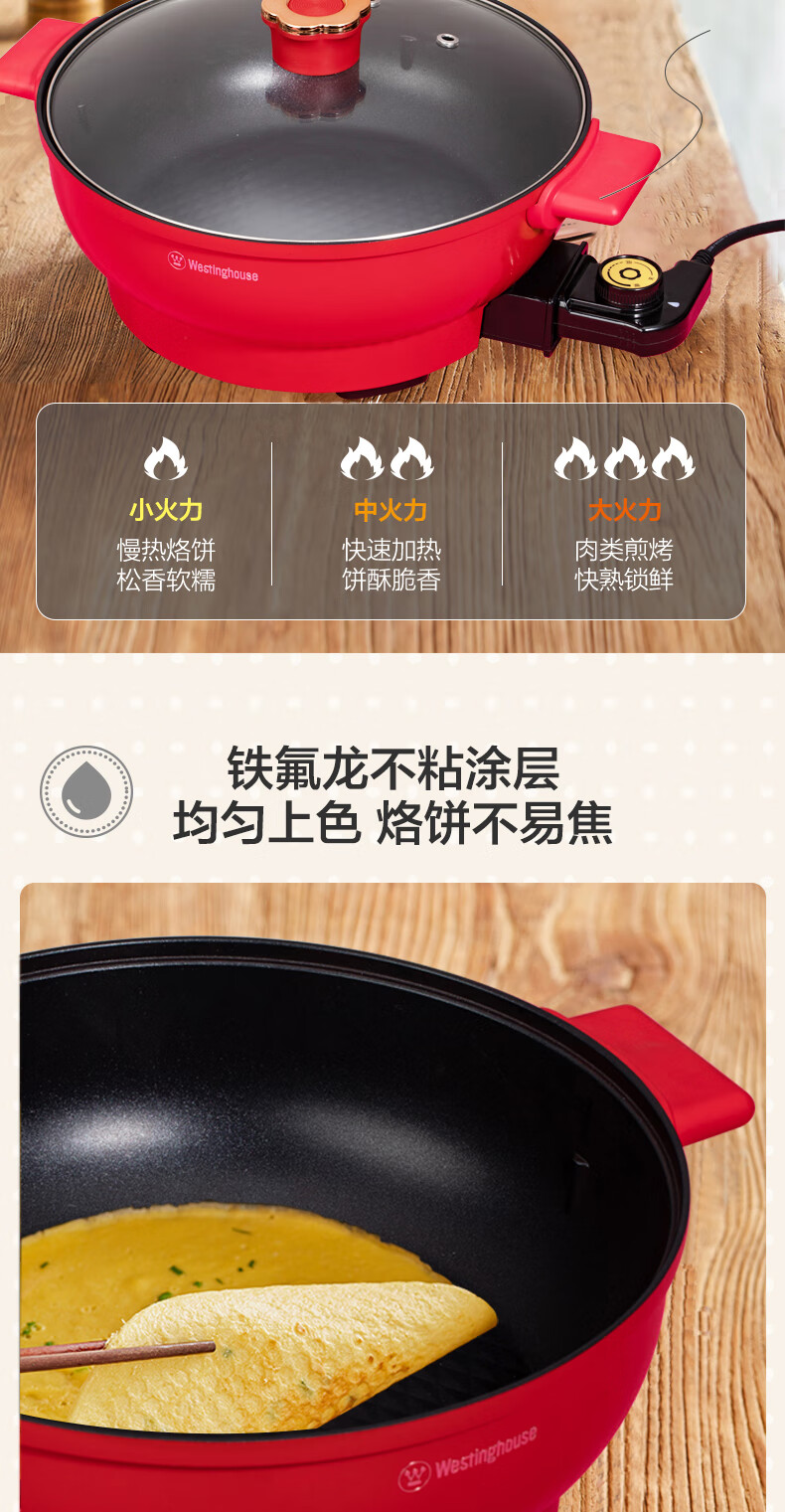 西屋(Westinghouse)多功能电火锅WHG-1501B 5L容量 不粘涂层 1500W (单位:台) 红色