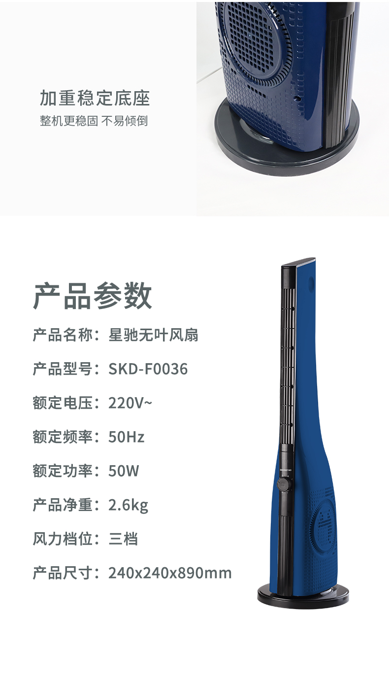 思嘉思达 星驰凉扇SKD-F0036 蓝色