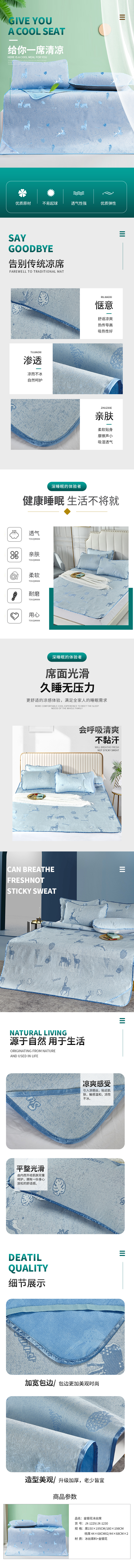 金丝莉KINTHERI 金银花冰丝席 蓝色