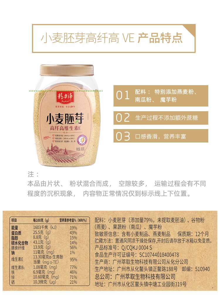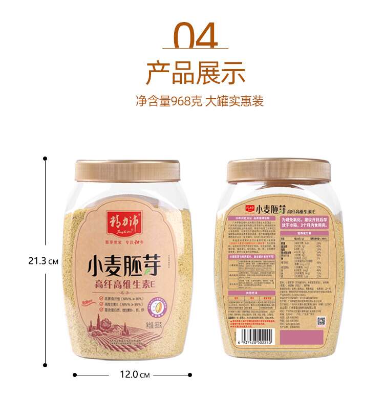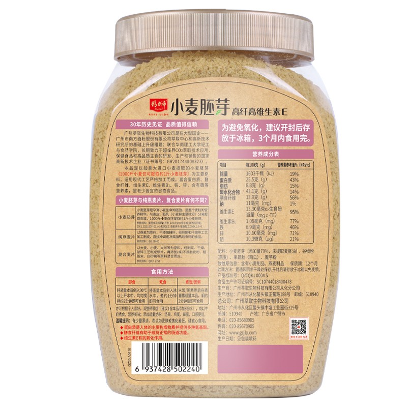 精力沛小麦胚芽高纤高维生素E即食冲饮胚芽营养原味无加蔗糖燕麦代餐968g 罐 透明色