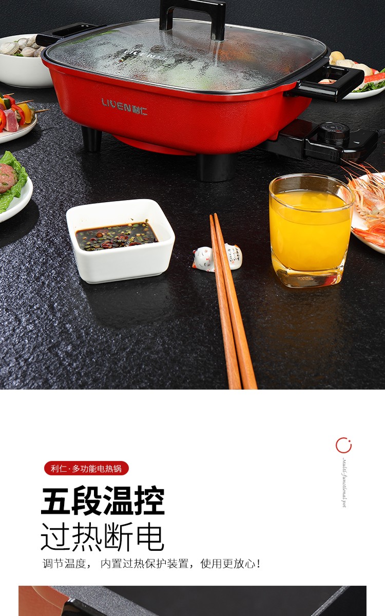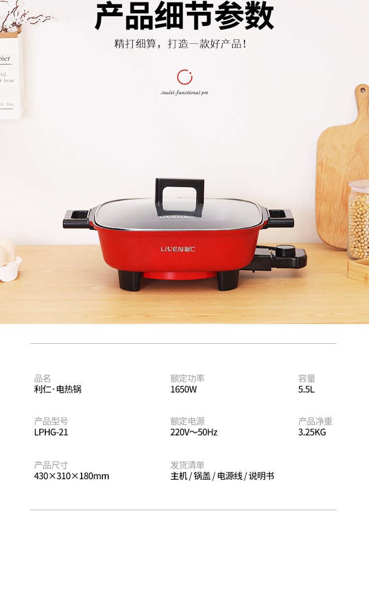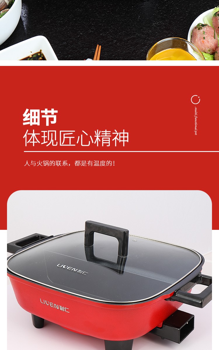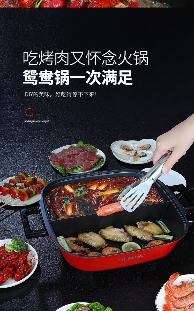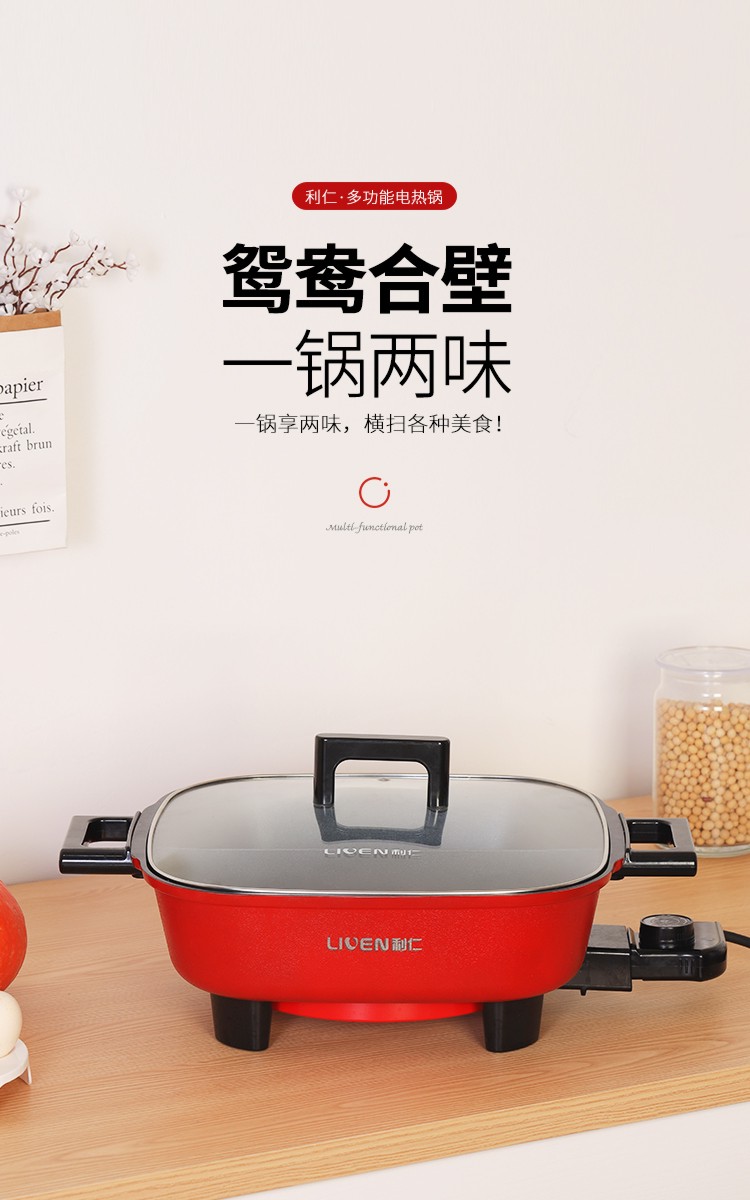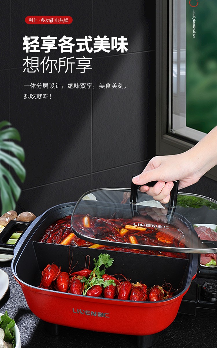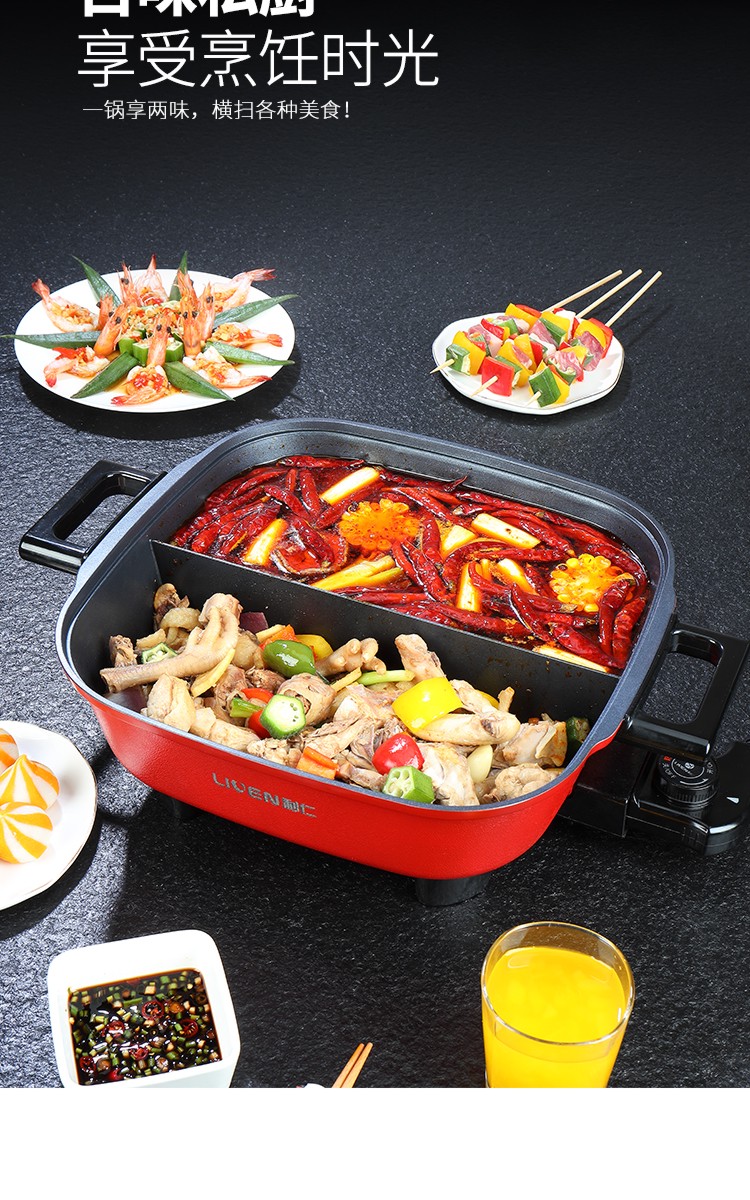 利仁(Liven)鸳鸯电火锅 多功能大功率 一锅双味1650W 5.5L LPHG-21 红色
