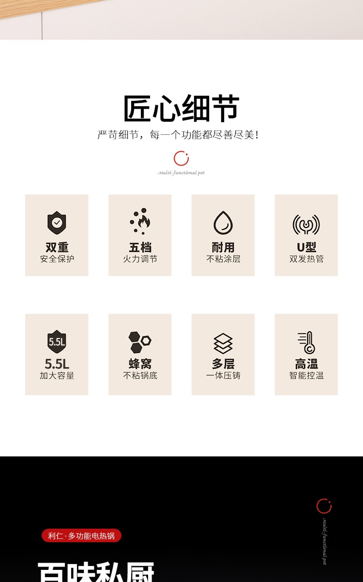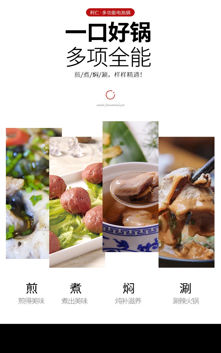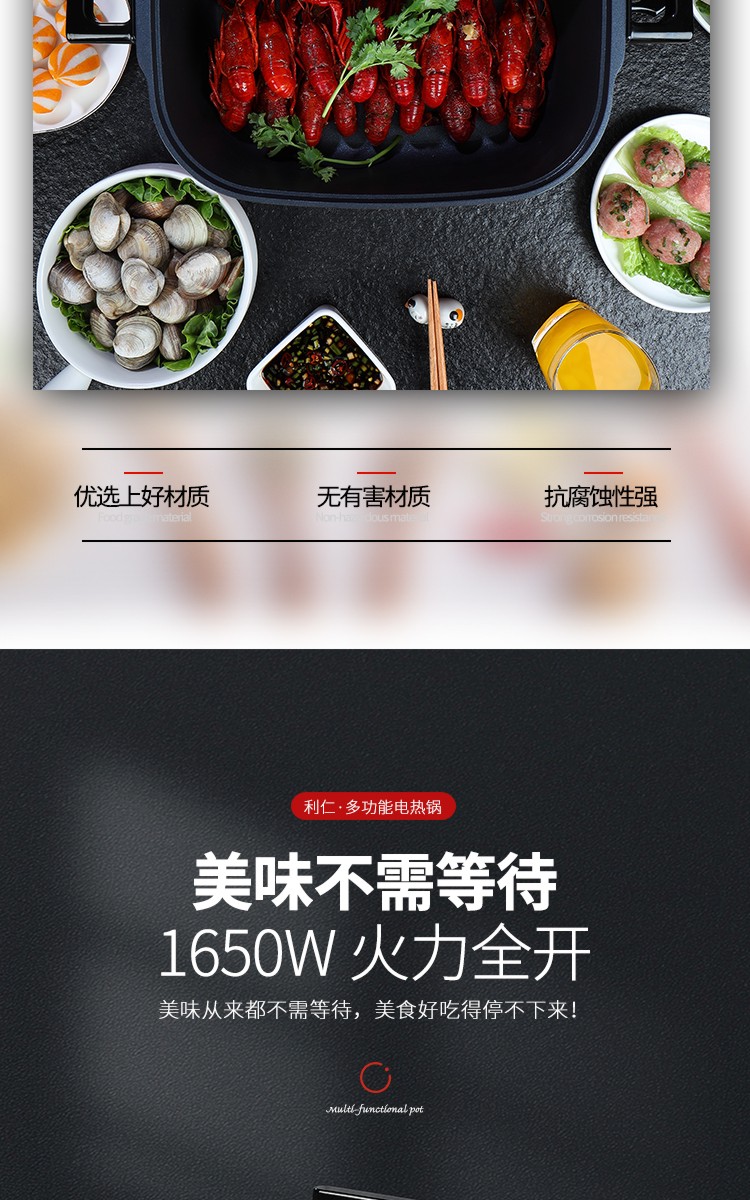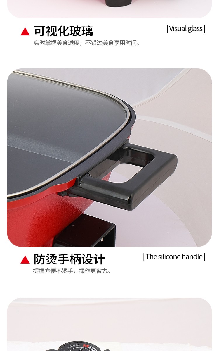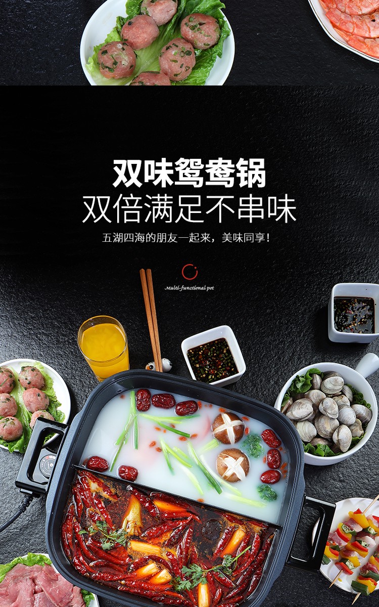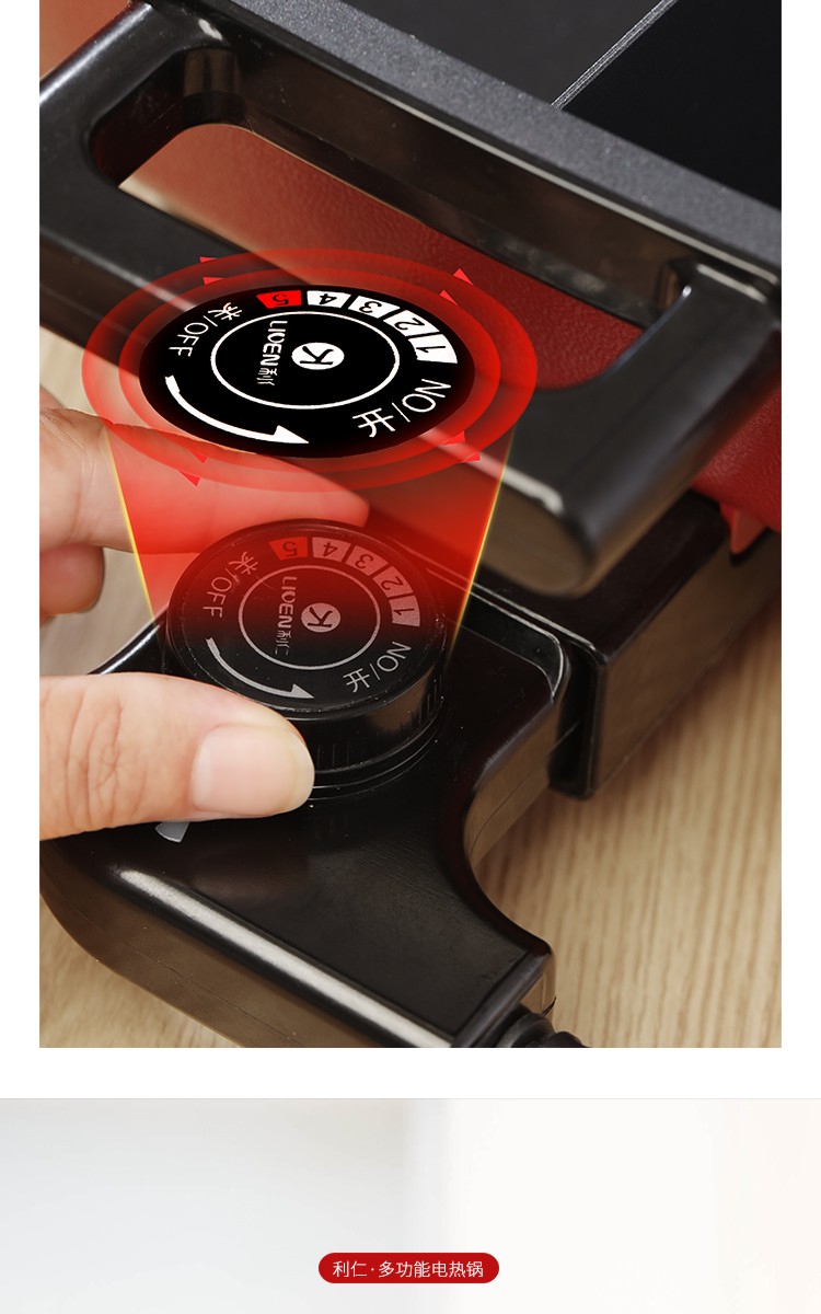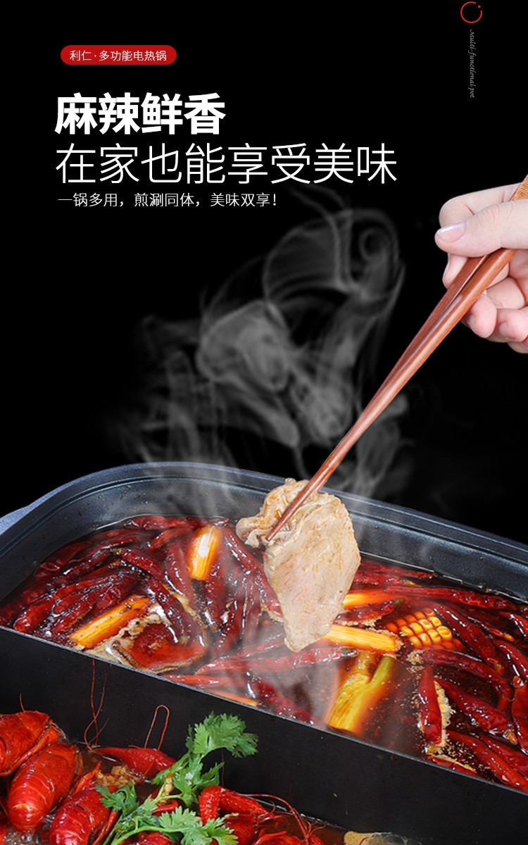 利仁(Liven)鸳鸯电火锅 多功能大功率 一锅双味1650W 5.5L LPHG-21 红色