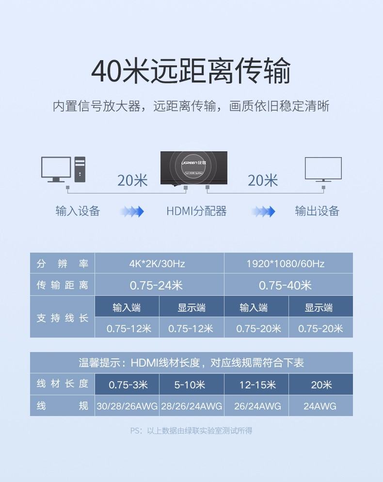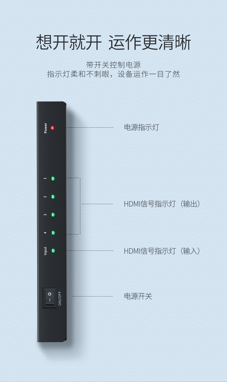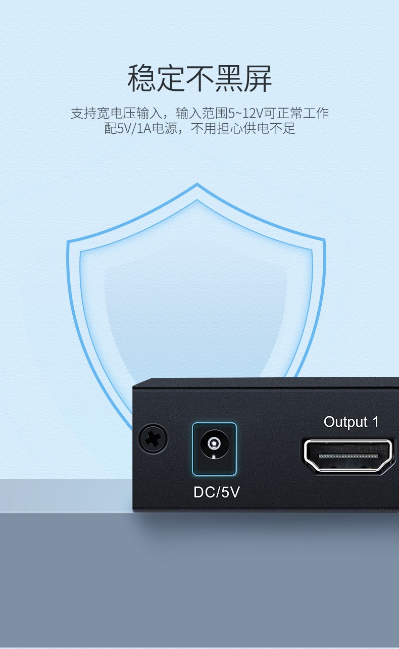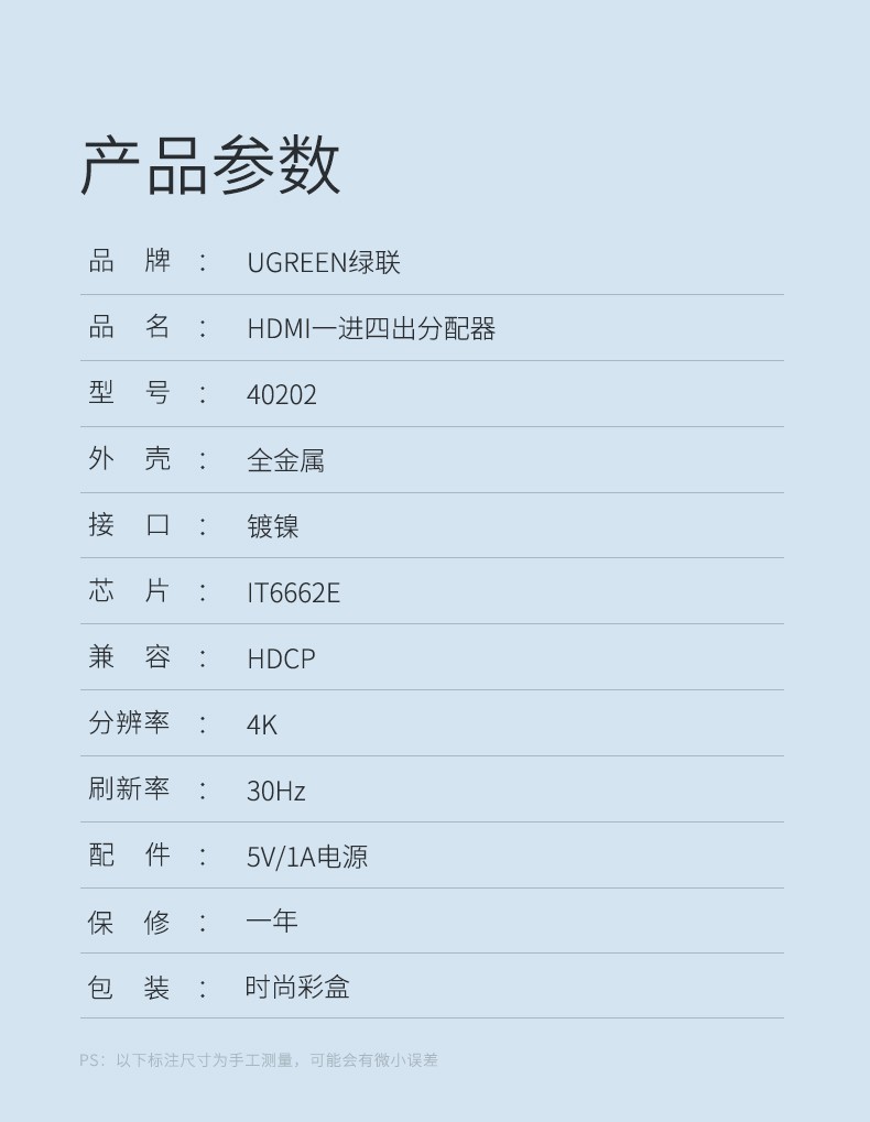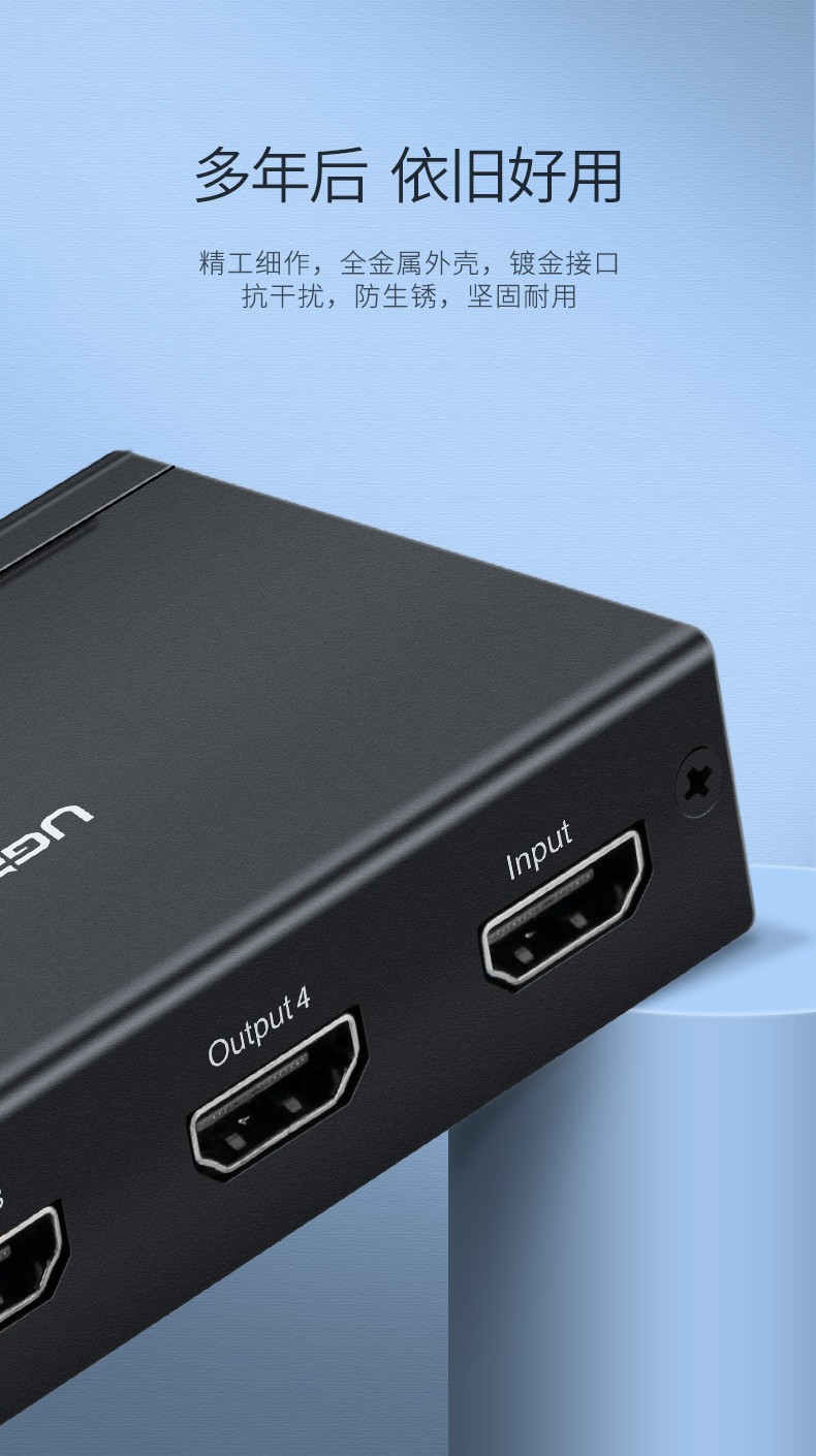 绿联 40202 HDMI分配器 一进四出4K数字高清视频分屏同屏器 黑色