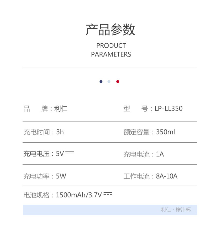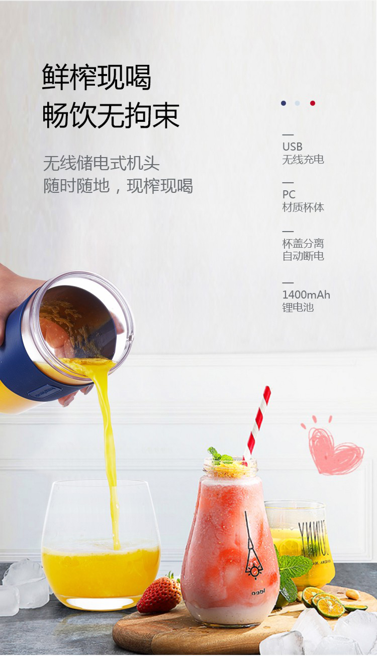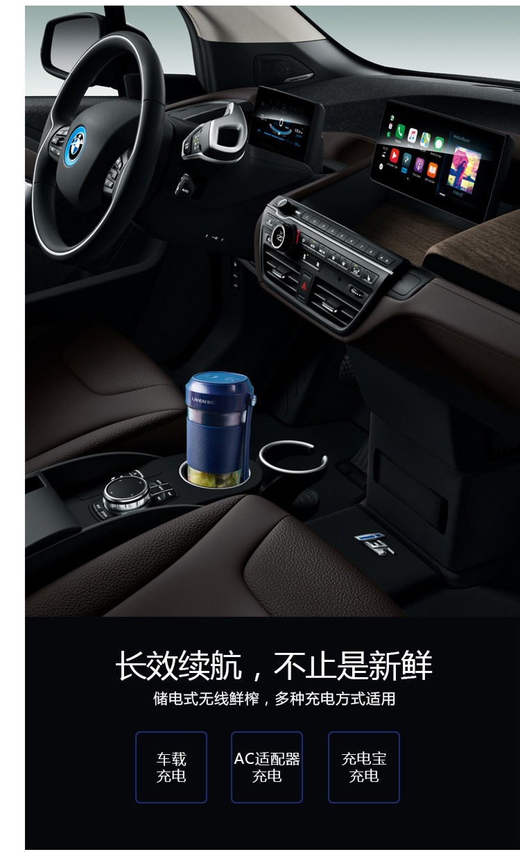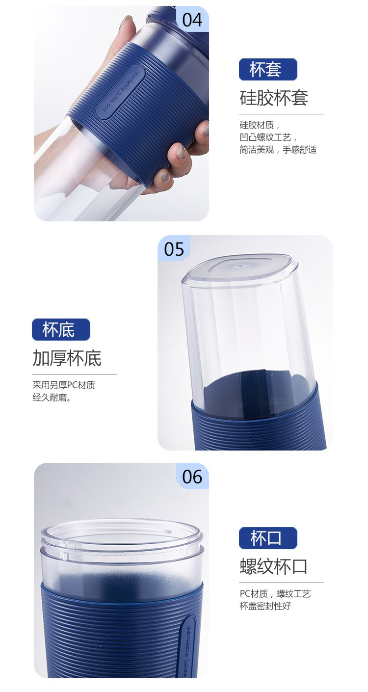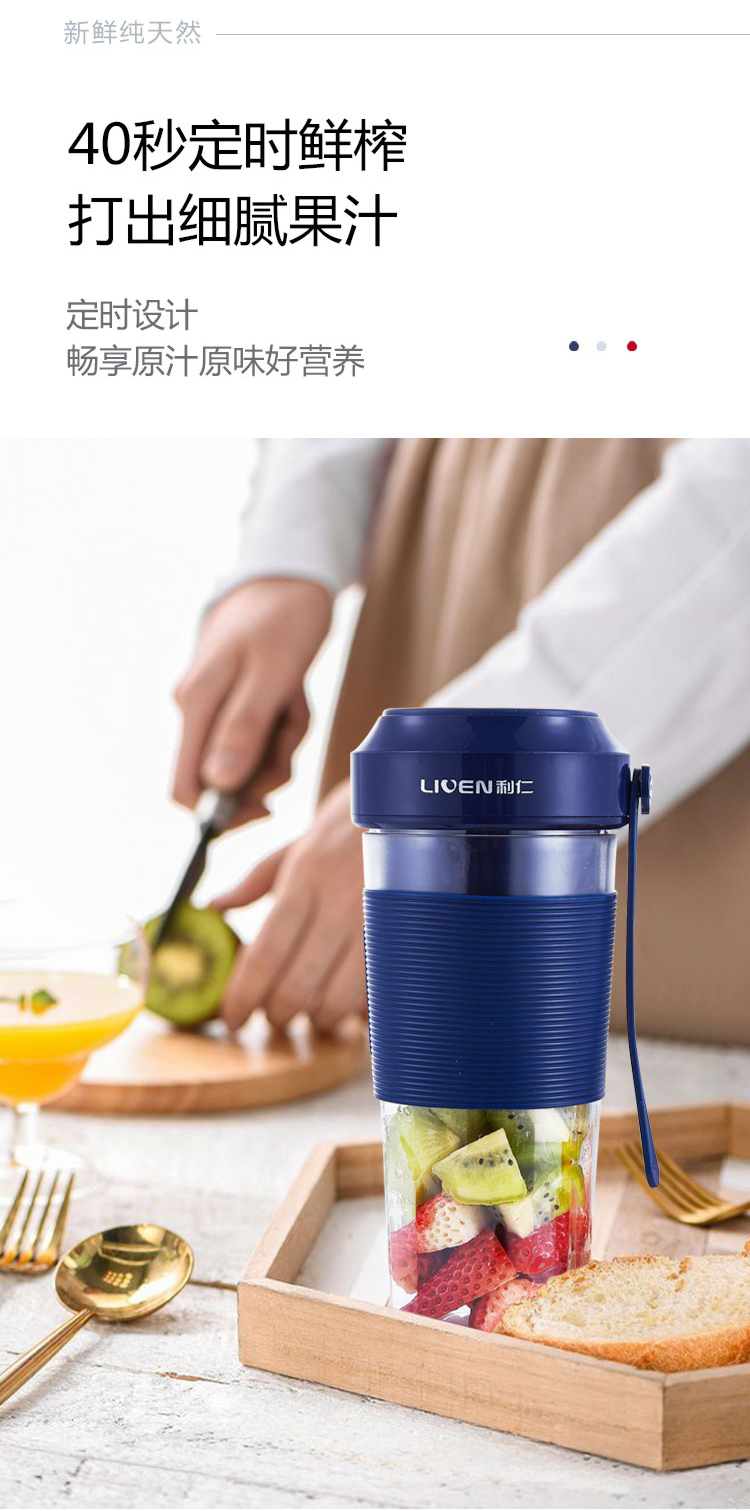 利仁(Liven)榨汁机 便携式充电 LP-LL350 迷你无线果汁机料理机随行杯 蓝色 榨汁杯 350ML 君子蓝