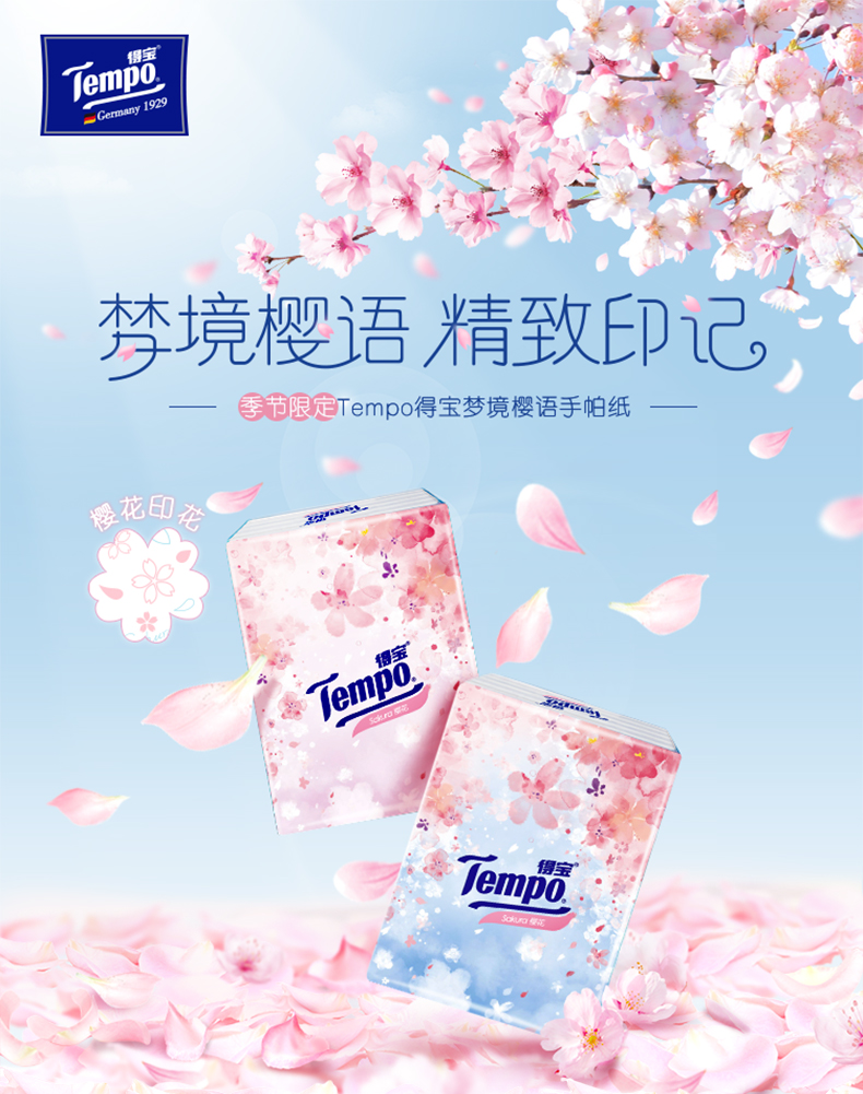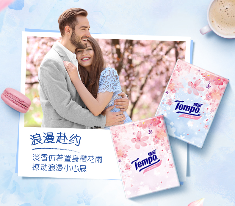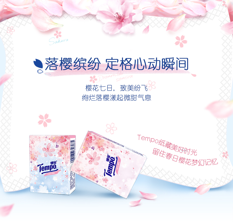 得宝(tempo)樱花纸手帕7片12包 迷你有香面巾纸餐巾纸德宝纸巾便携式(樱花香味) 樱花粉