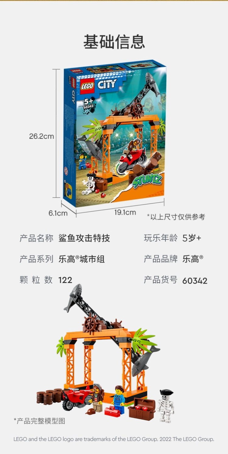 乐高 城市系列 5岁+ 60342 鲨鱼攻击特技 儿童玩具 男孩女孩 礼物 参照商品详情页