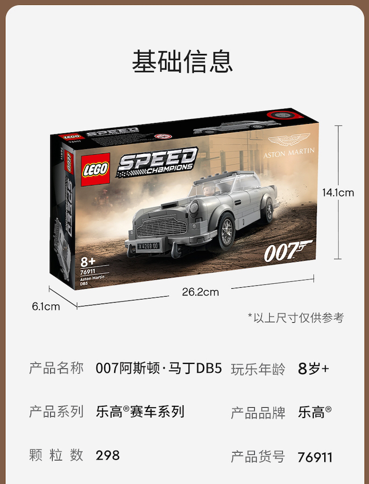乐高 超级赛车系列 8岁+ 76911 007阿斯顿·马丁DB5 儿童玩具 男孩女孩 礼物 参照商品详情页