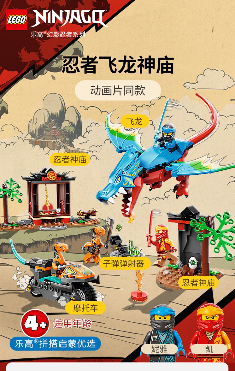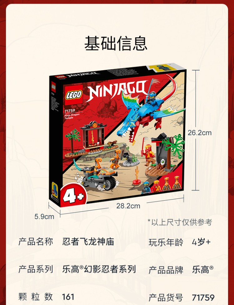 乐高 幻影忍者系列 4岁+ 71759 忍者飞龙神庙 儿童玩具 男孩女孩 礼物 参照商品详情页