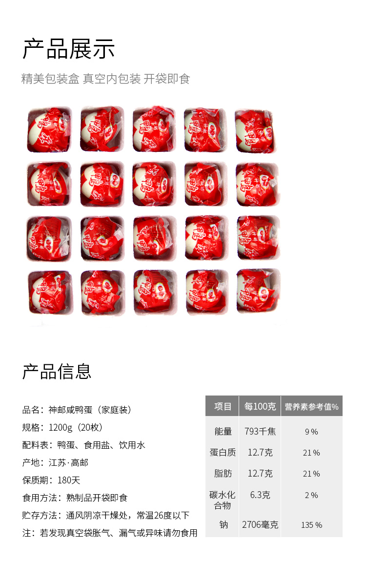 神邮咸鸭蛋 熟20只x60g 1200g/盒 家庭装