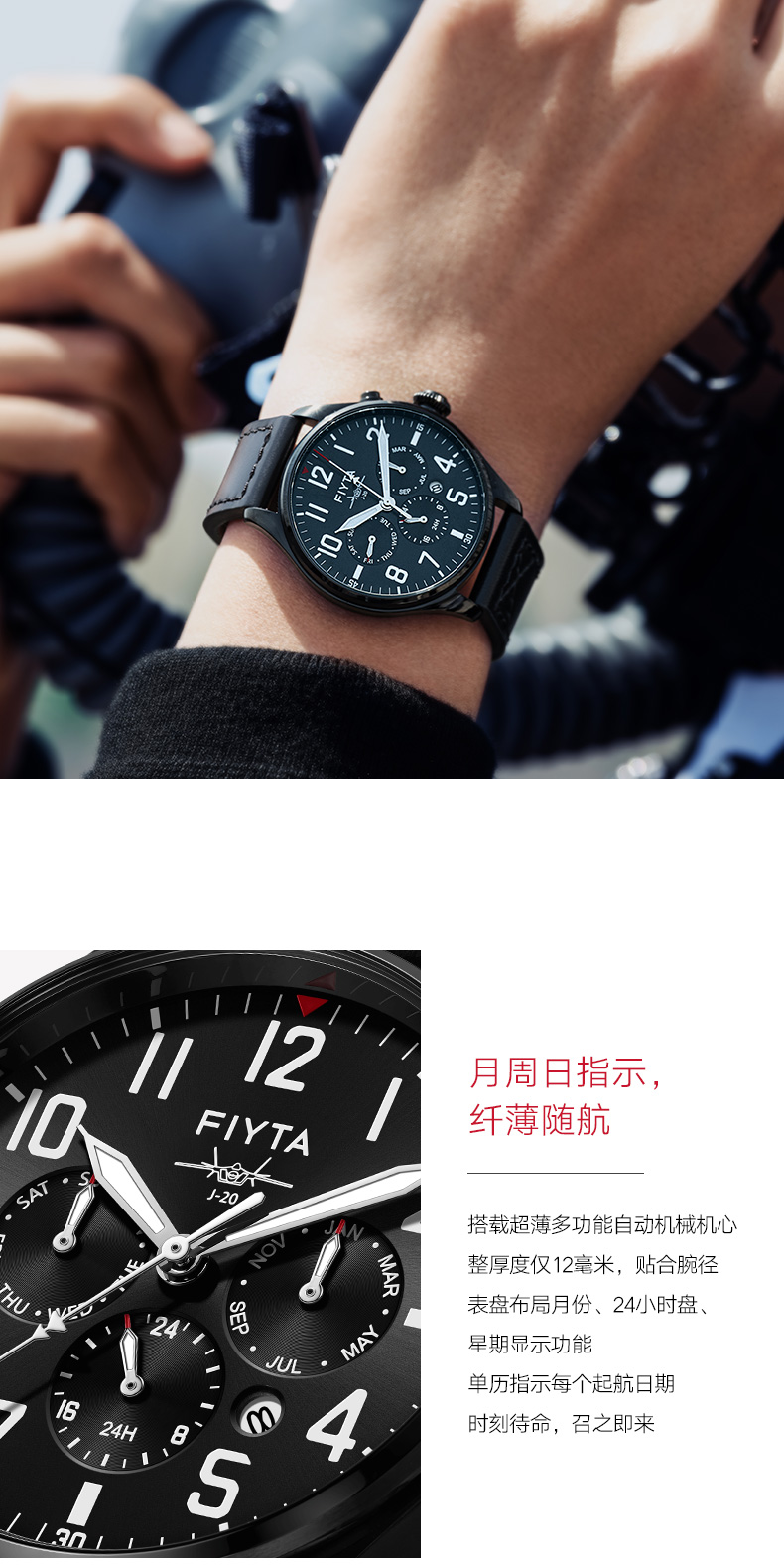 飞亚达(FIYTA)马赫系列男士机械表腕表GA881007.BBB 黑色