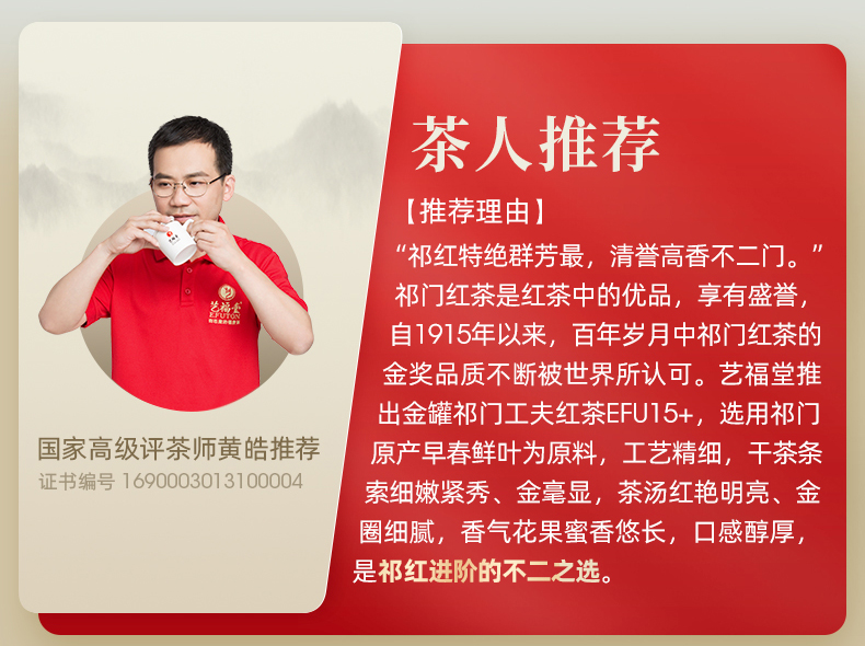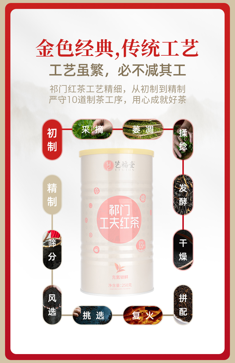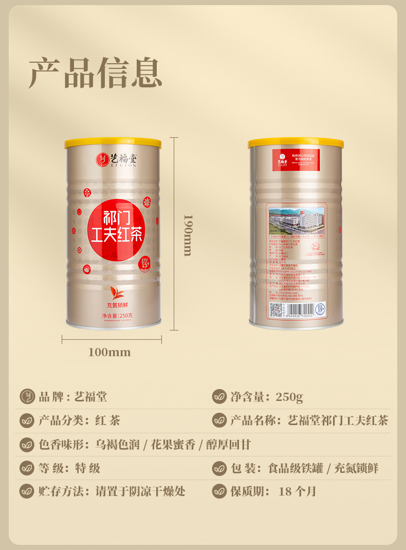 艺福堂 祁门工夫红茶Y31493 250g单位:罐 黄色