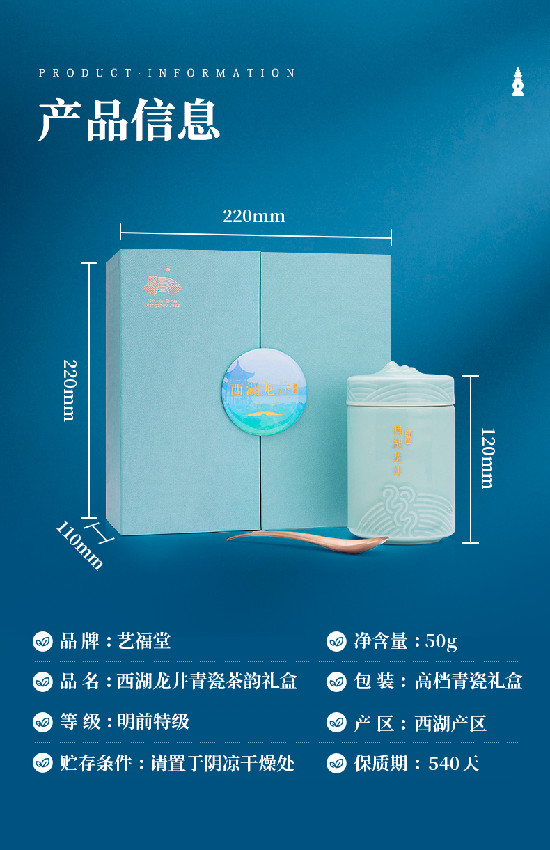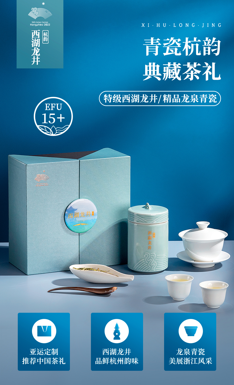 艺福堂 YZH698 青瓷茶韵(亚运会联名特许)50g/盒单位:盒 蓝色