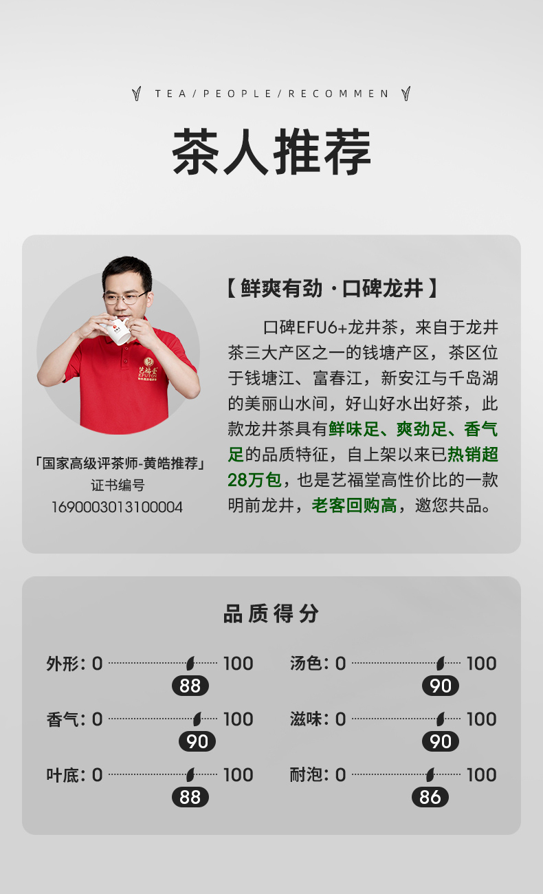 艺福堂 Y31352口碑龙井茶200g单位:包 黄色