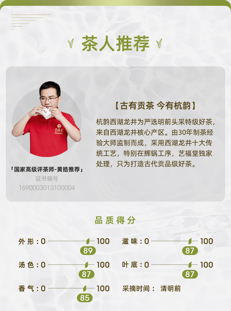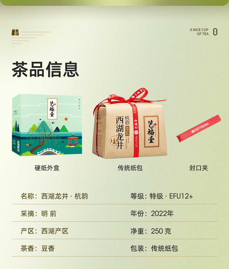 艺福堂 Y31365杭韵 西湖龙井茶 250g/包 红色